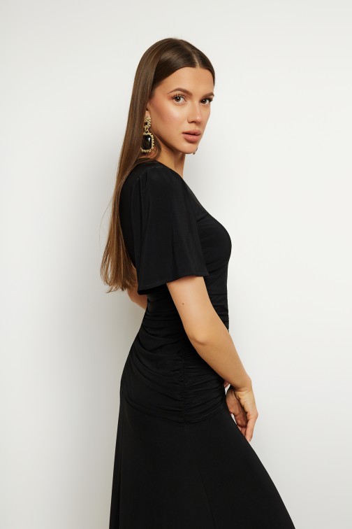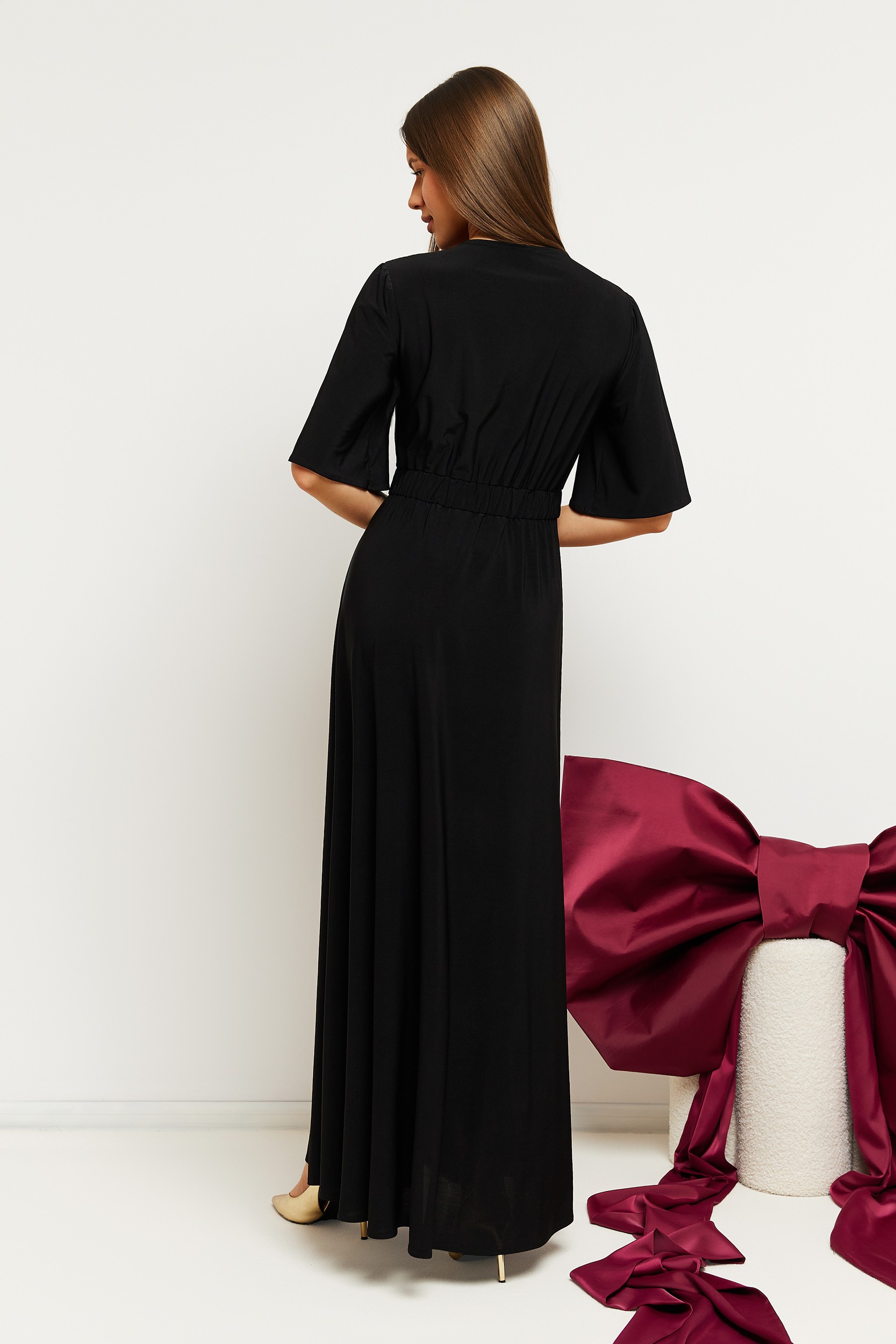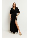 Sukienka wieczorowa z wysokim rozcięciem na nogę - czarna