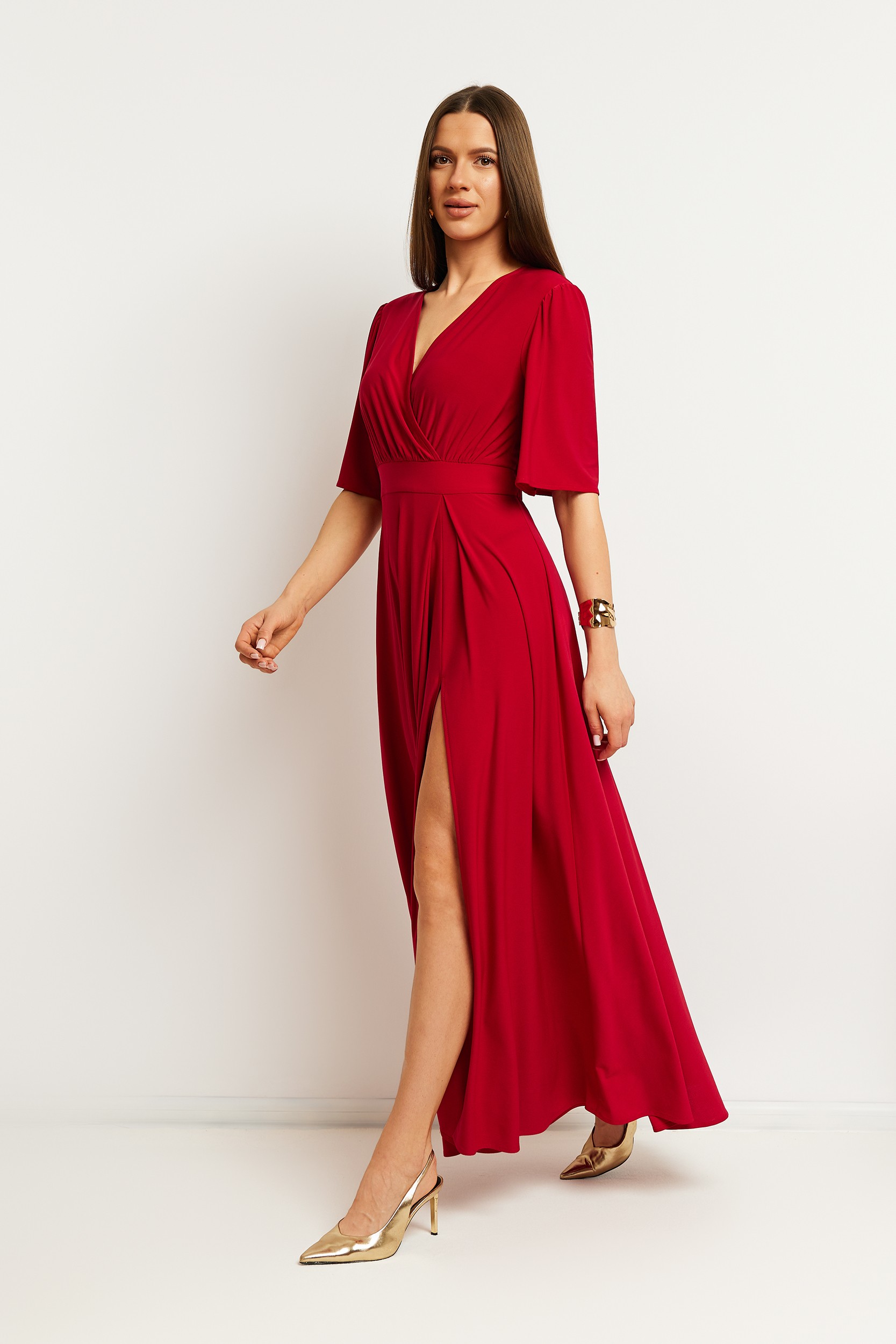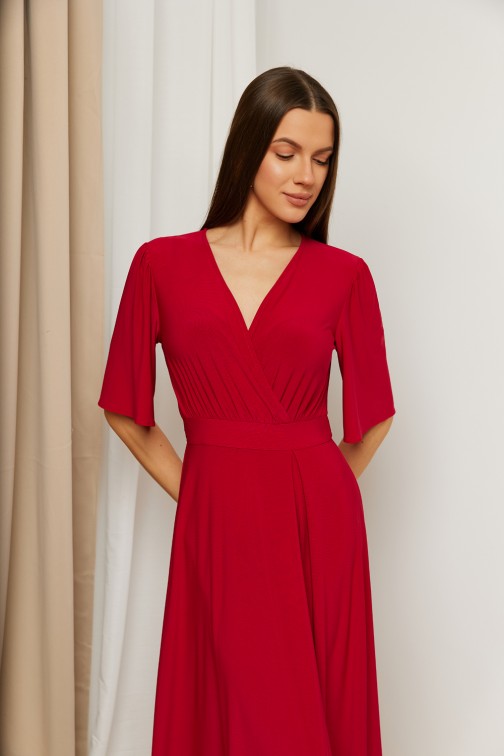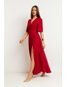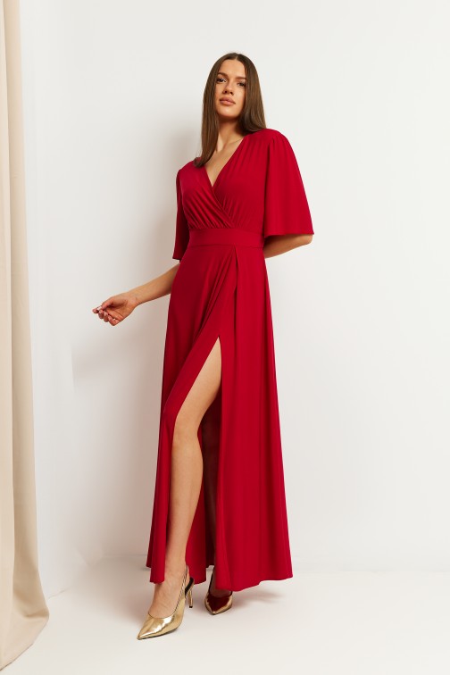 Sukienka wieczorowa z wysokim rozcięciem na nogę - czerwona