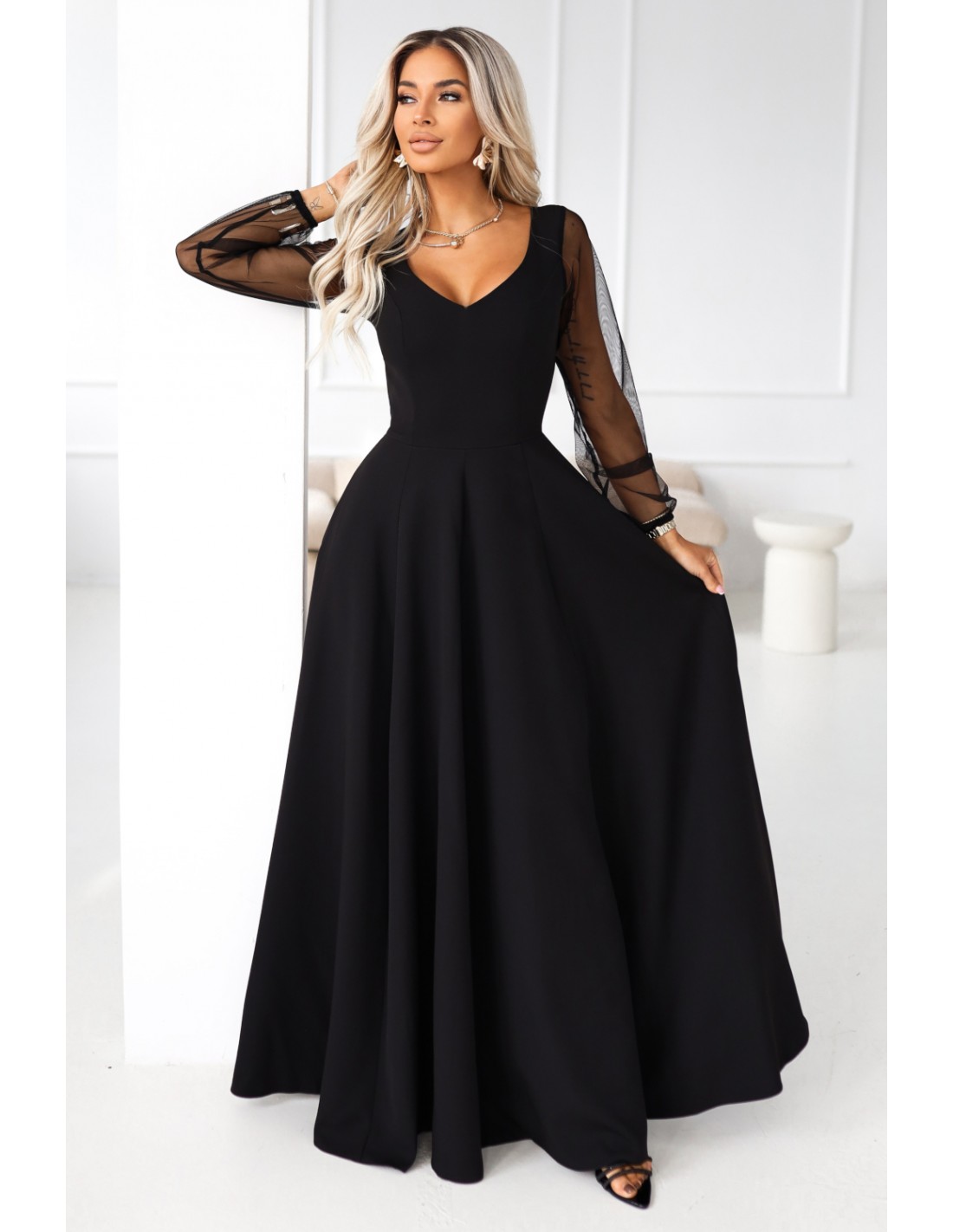 DM1544 Sukienka maxi z tiulowymi rękawami - czarna