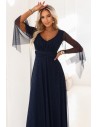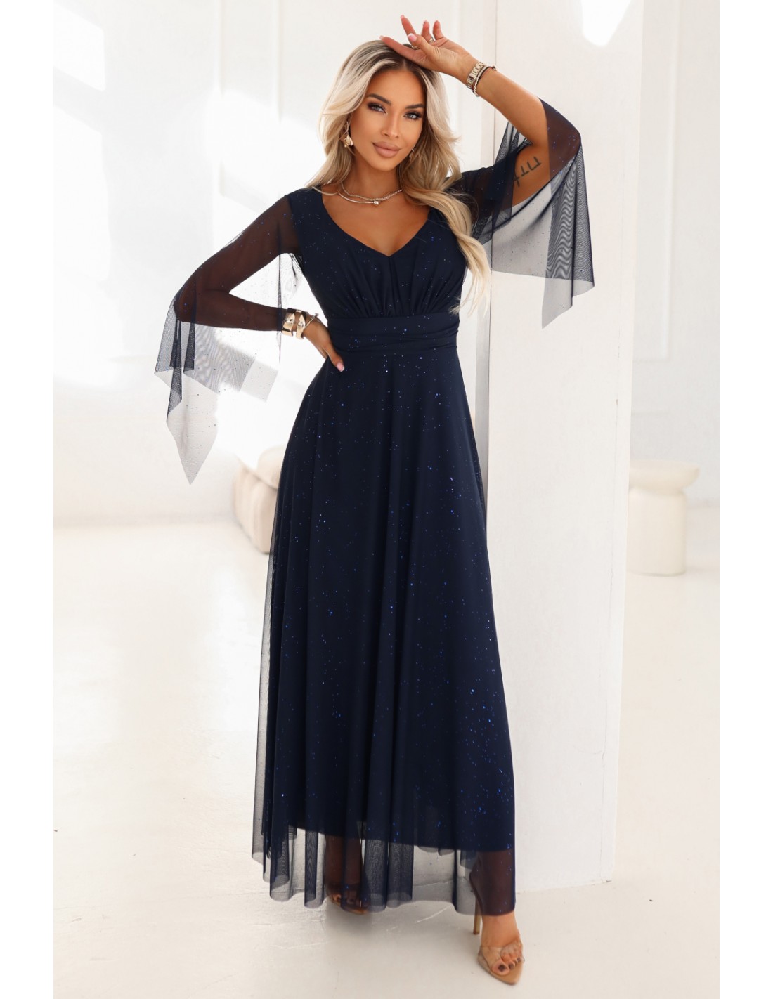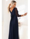 DM1547 Sukienka połyskująca maxi z dekoltem V - granatowa