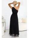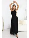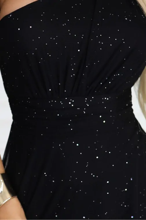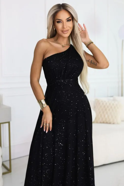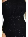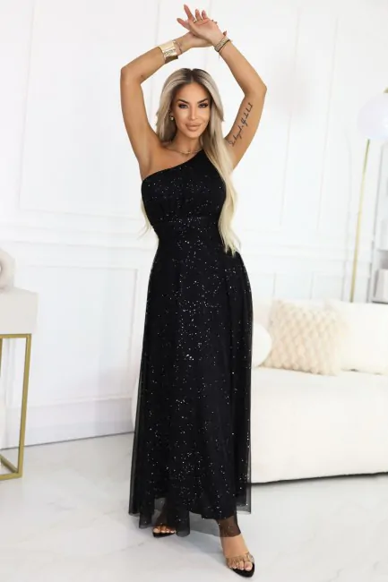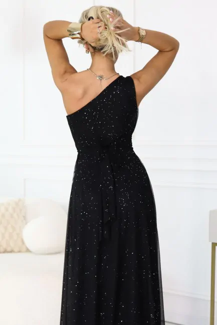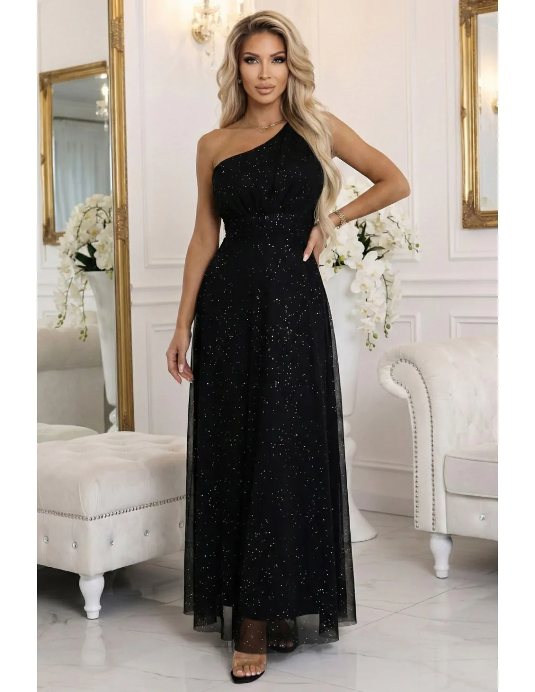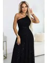 DM1548 Długa sukienka maxi na jedno ramię - czarna