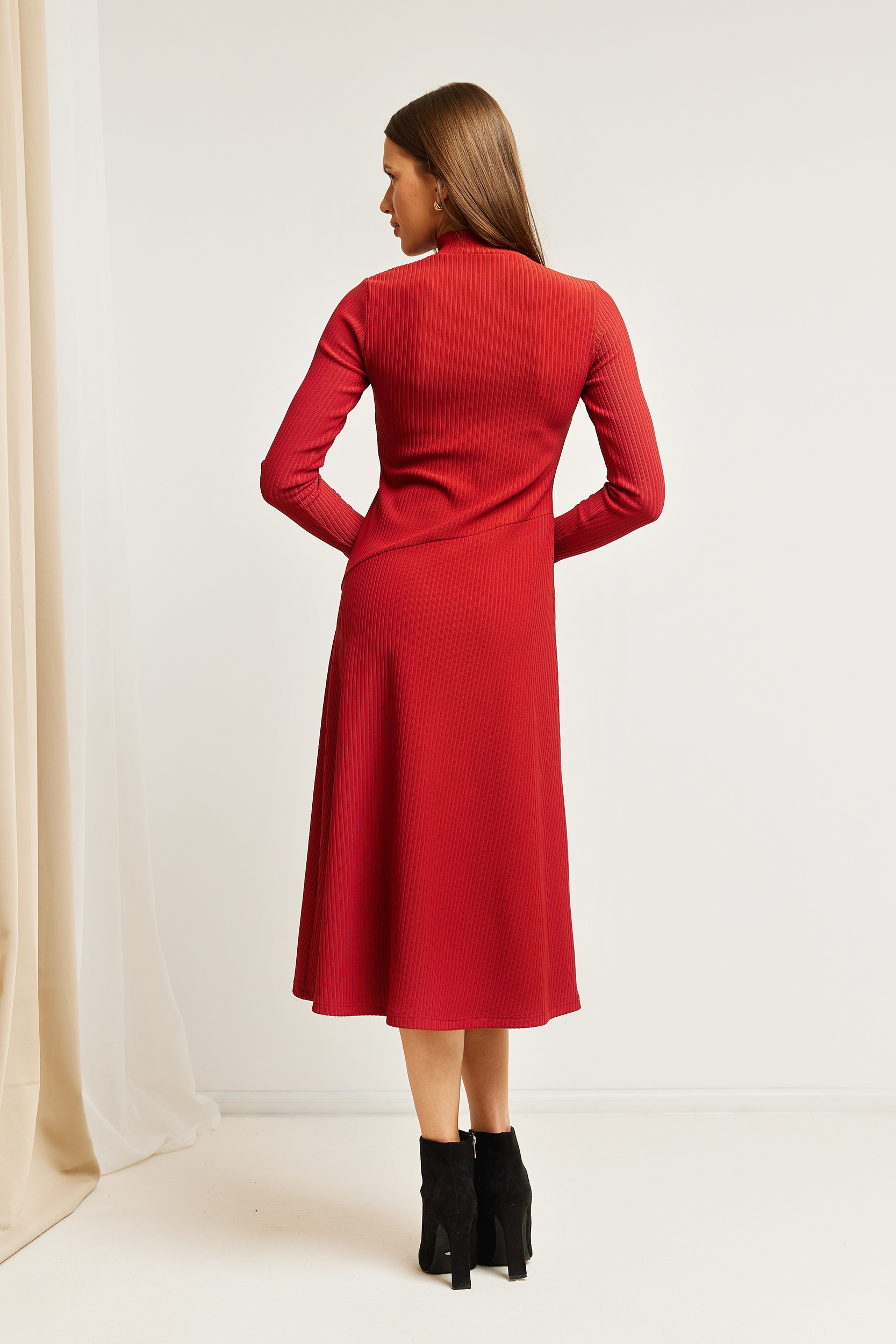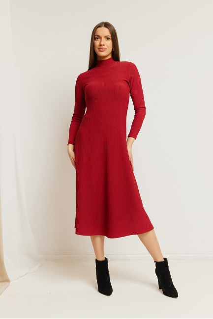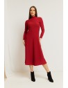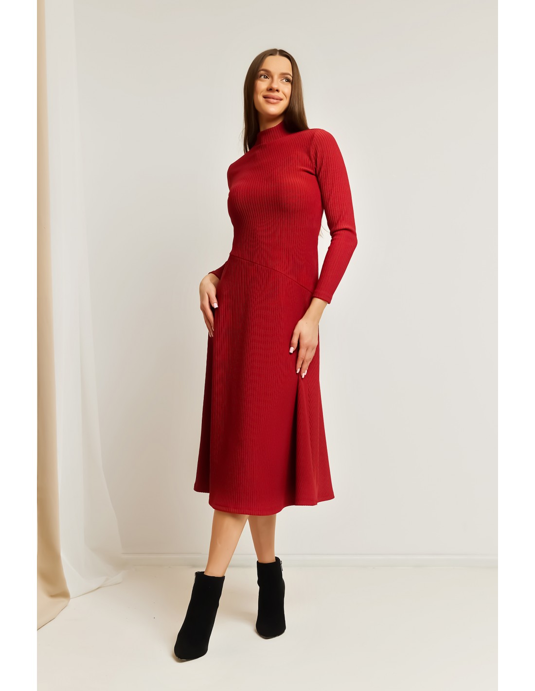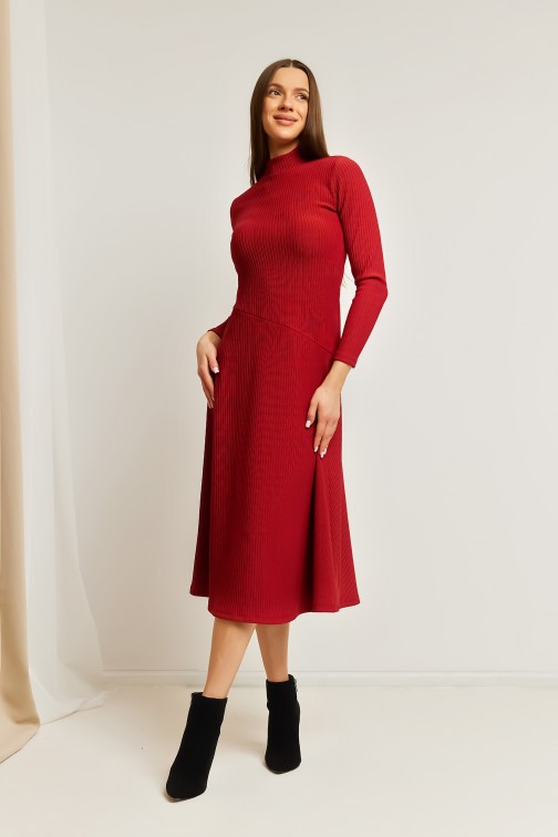 DM1550 Prążkowana sukienka midi z rozkloszowanym dołem - ceglasta
