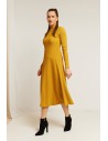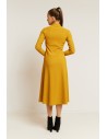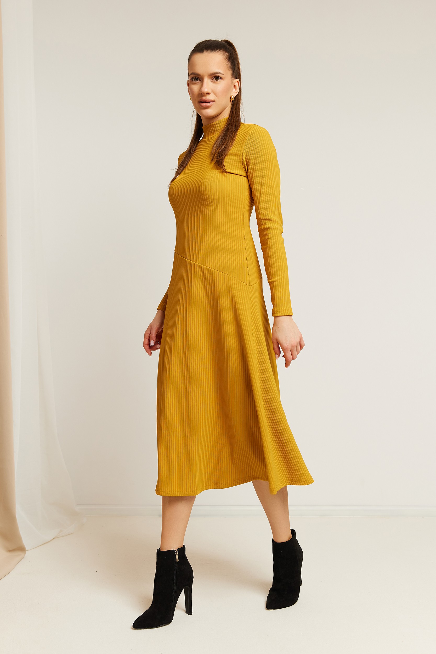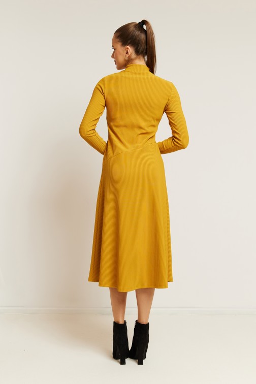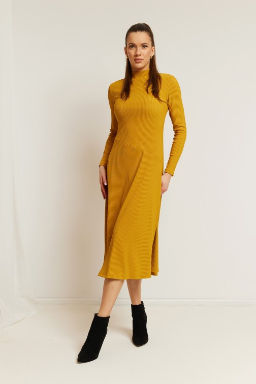 DM1550 Prążkowana sukienka midi z rozkloszowanym dołem - musztardowa