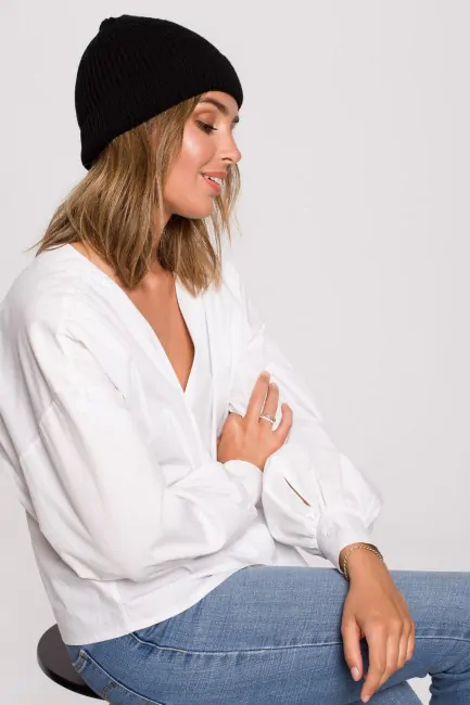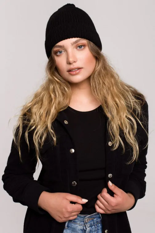 DM1552 Czapka - splot łańcuszek z wywinięciem - czarna