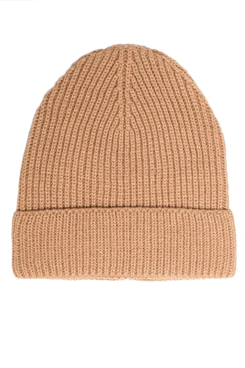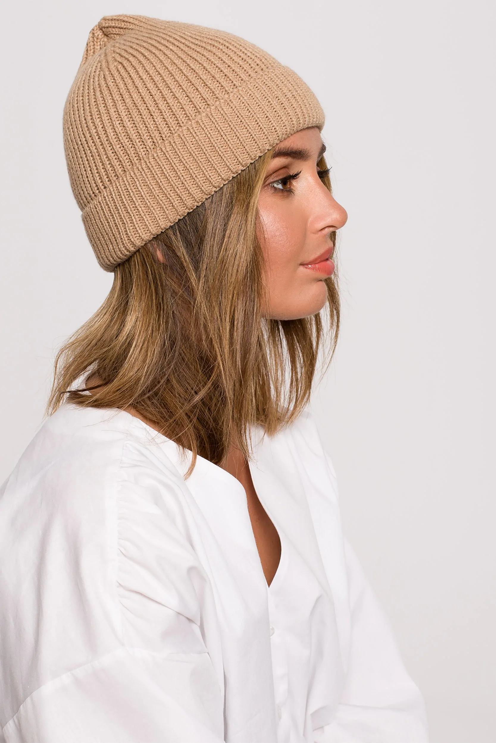 DM1552 Czapka - splot łańcuszek z wywinięciem - kamelowa