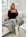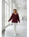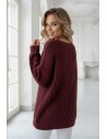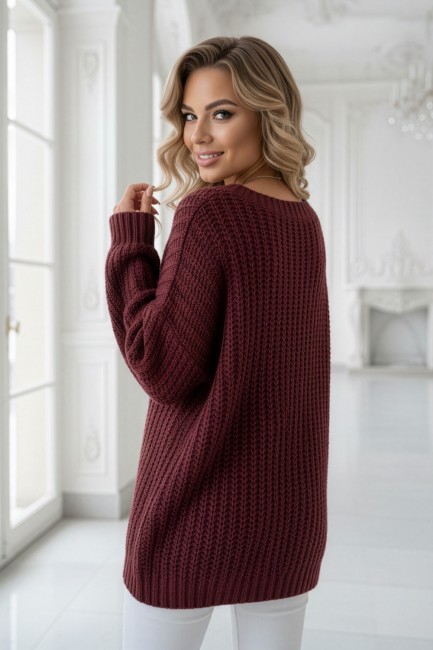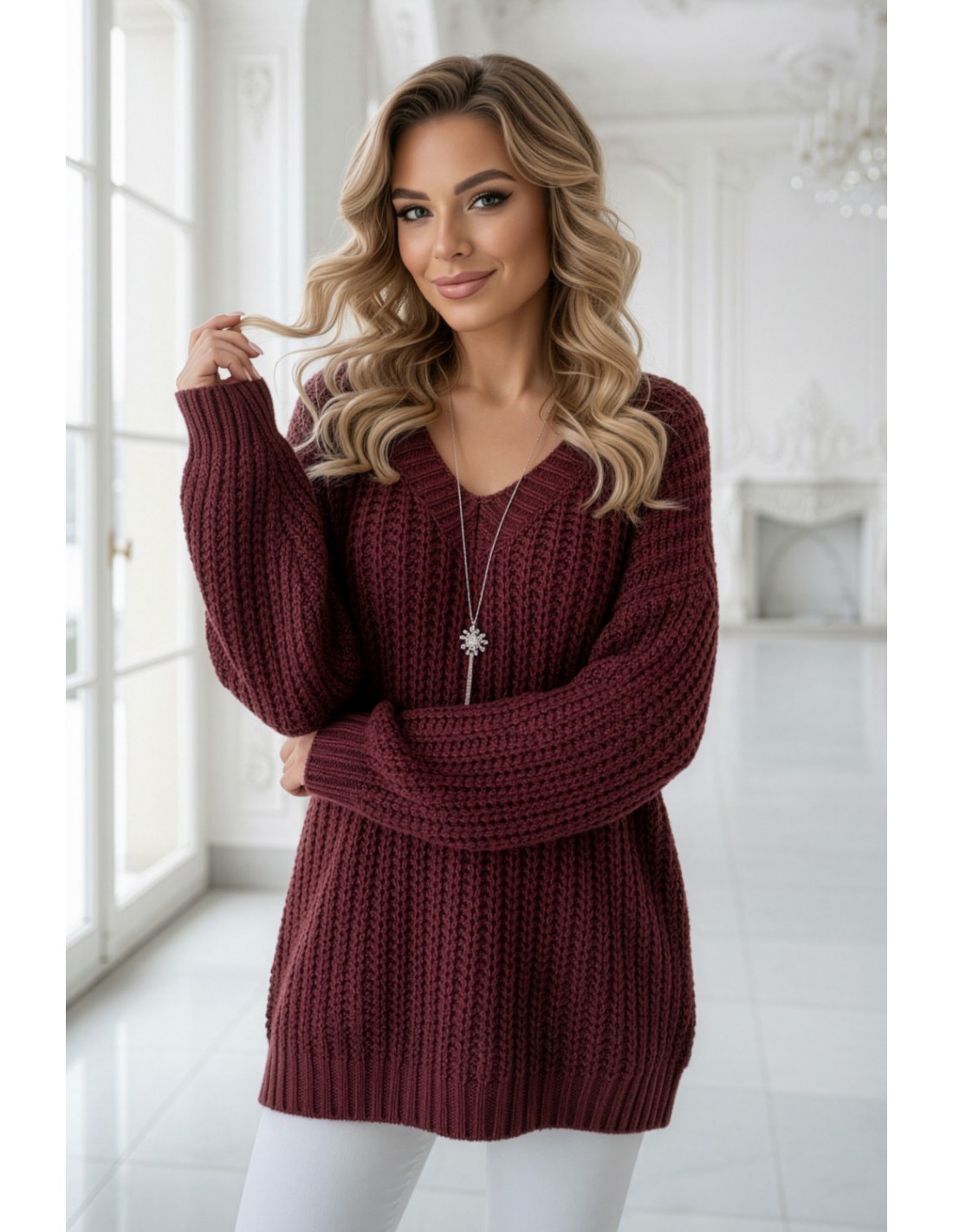 DM1560 Ciepły sweter oversize z dekoltem V - bordowy