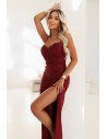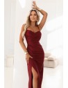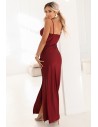 DM1562 Dopasowana sukienka maxi z kopertowym dekoltem - bordowa