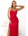 DM1562 Dopasowana sukienka maxi z kopertowym dekoltem - czerwona