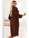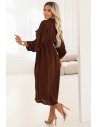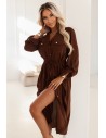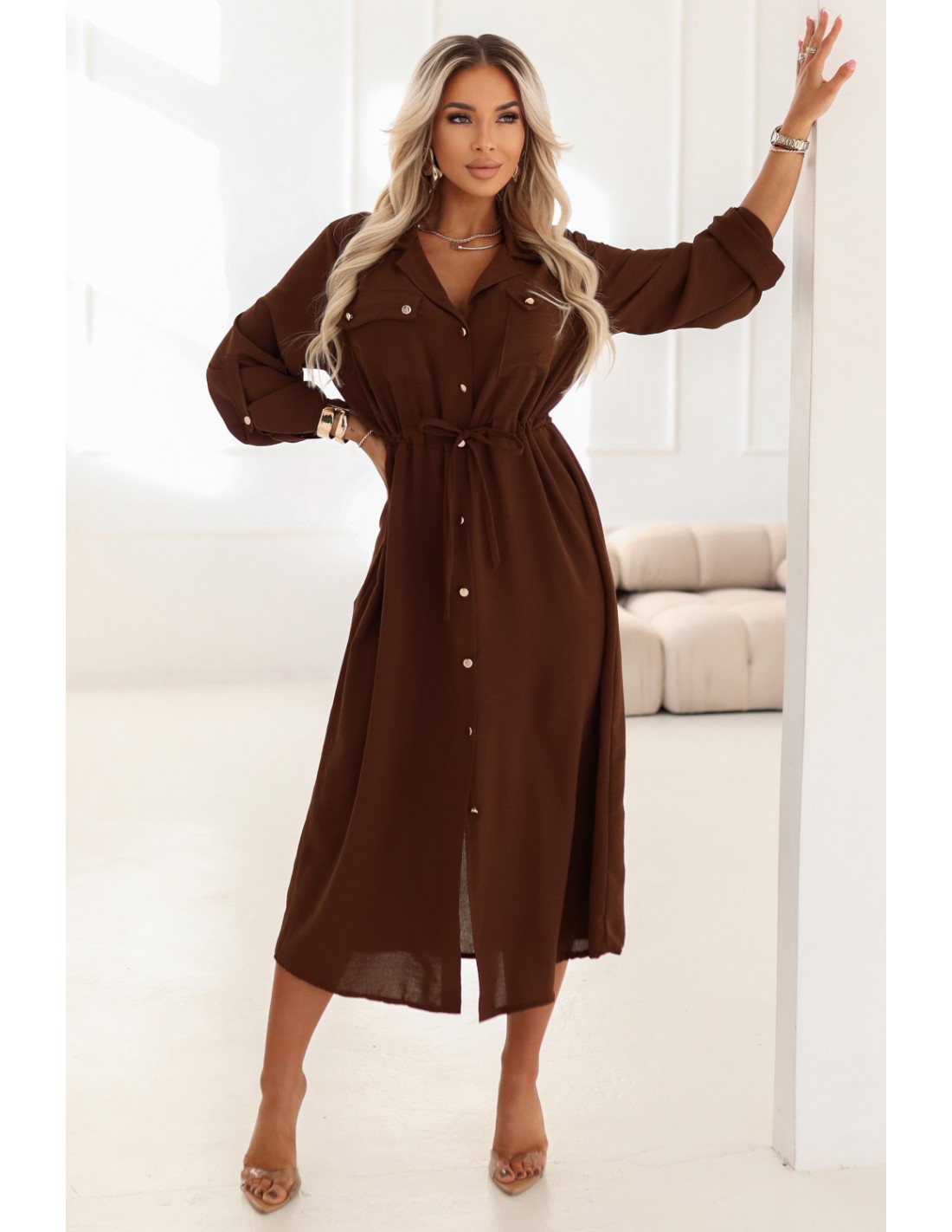 DM1564 Sukienka szmizjerka midi z guzikami i paskiem - czekoladowa