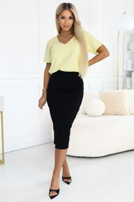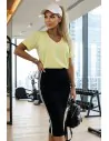 DM1567 Bawełniana bluzka damska z dekoltem V - żółta