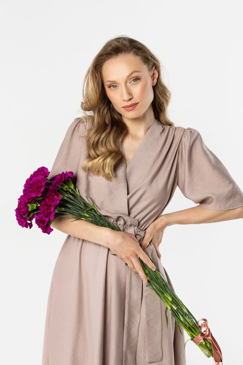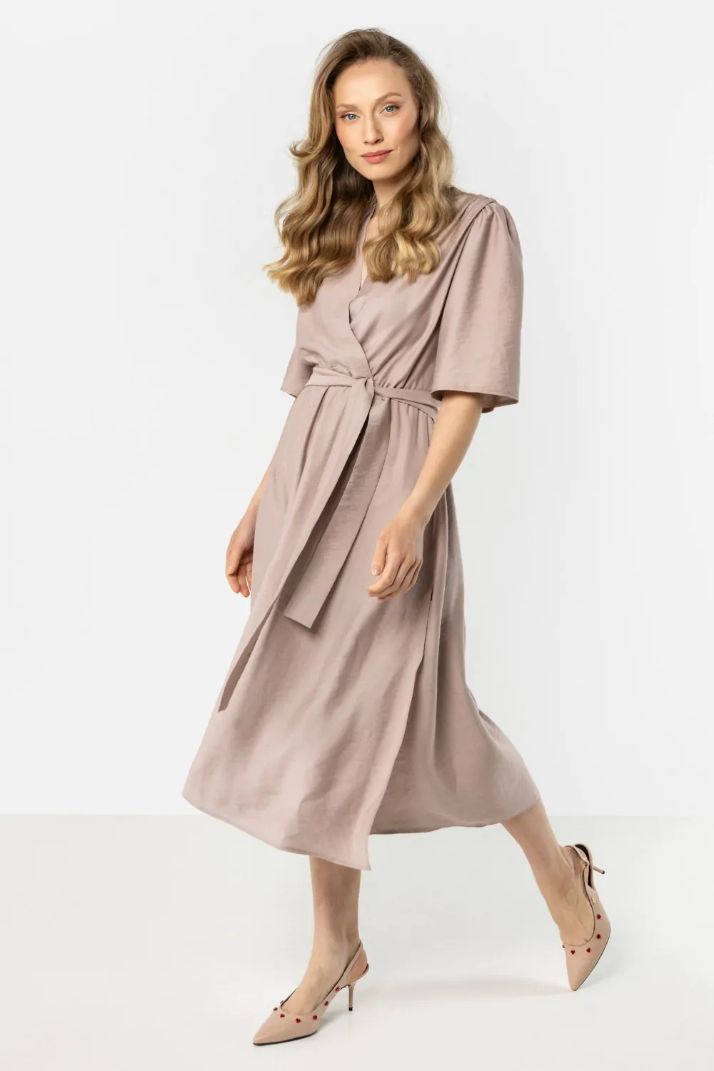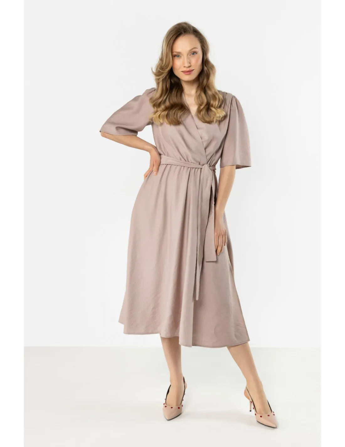 DM1570 Sukienka kopertowa z wiązaniem w talii - kaszmirowa