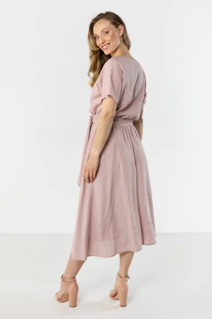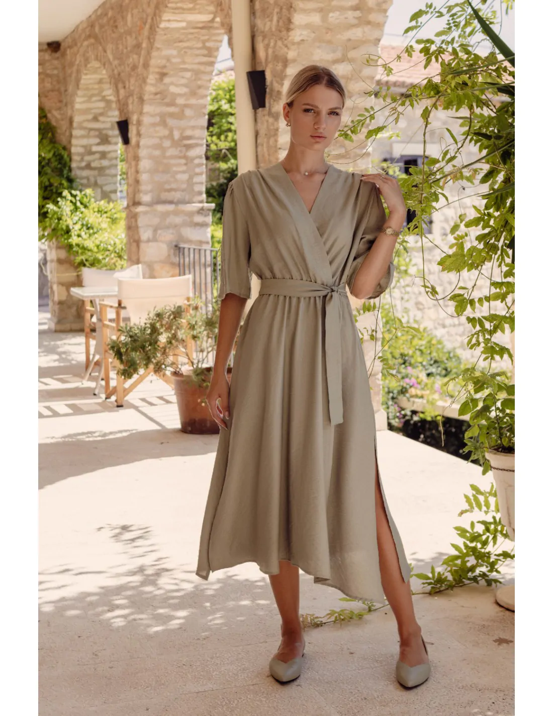 DM1570 Sukienka kopertowa z wiązaniem w talii - szałwiowa