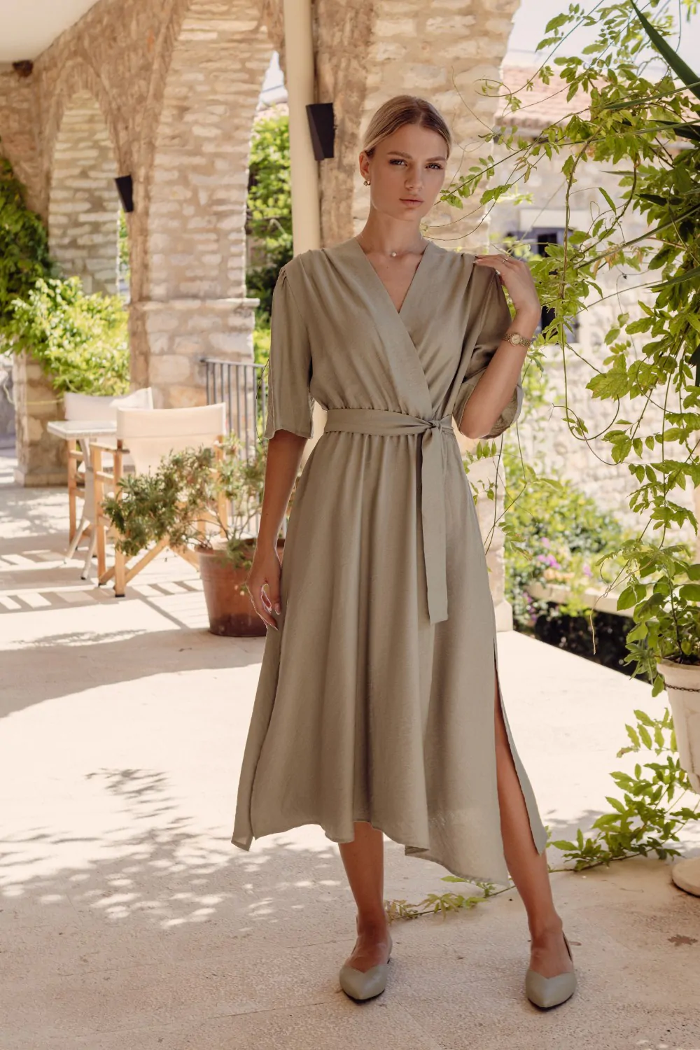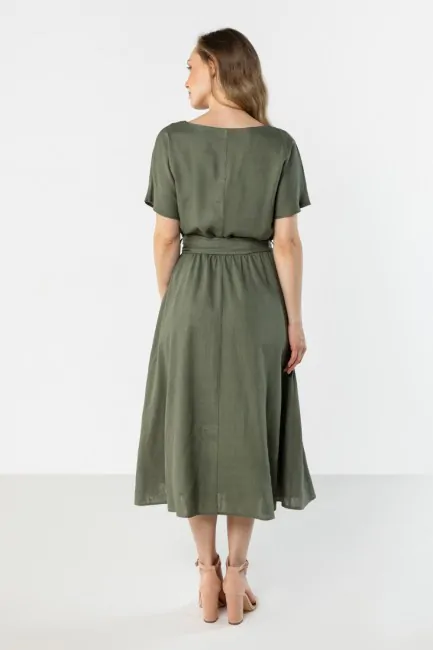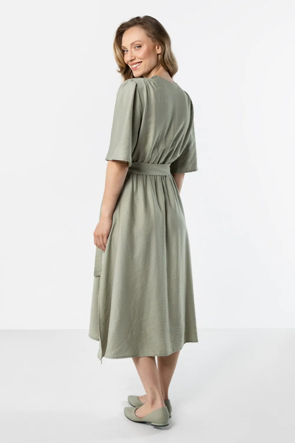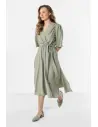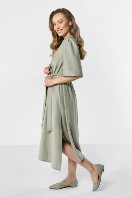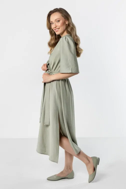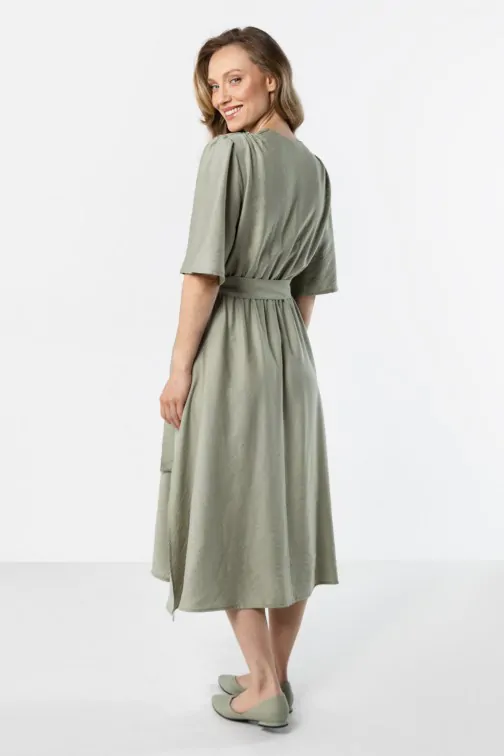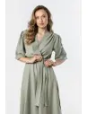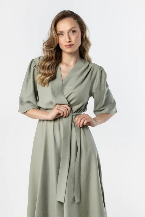 Sukienka kopertowa z wiązaniem w talii - szałwiowa