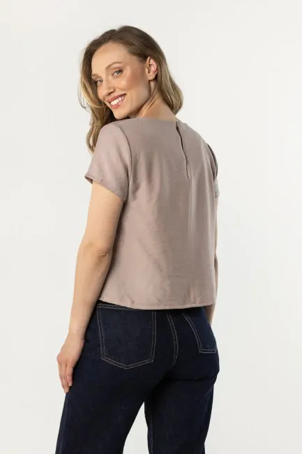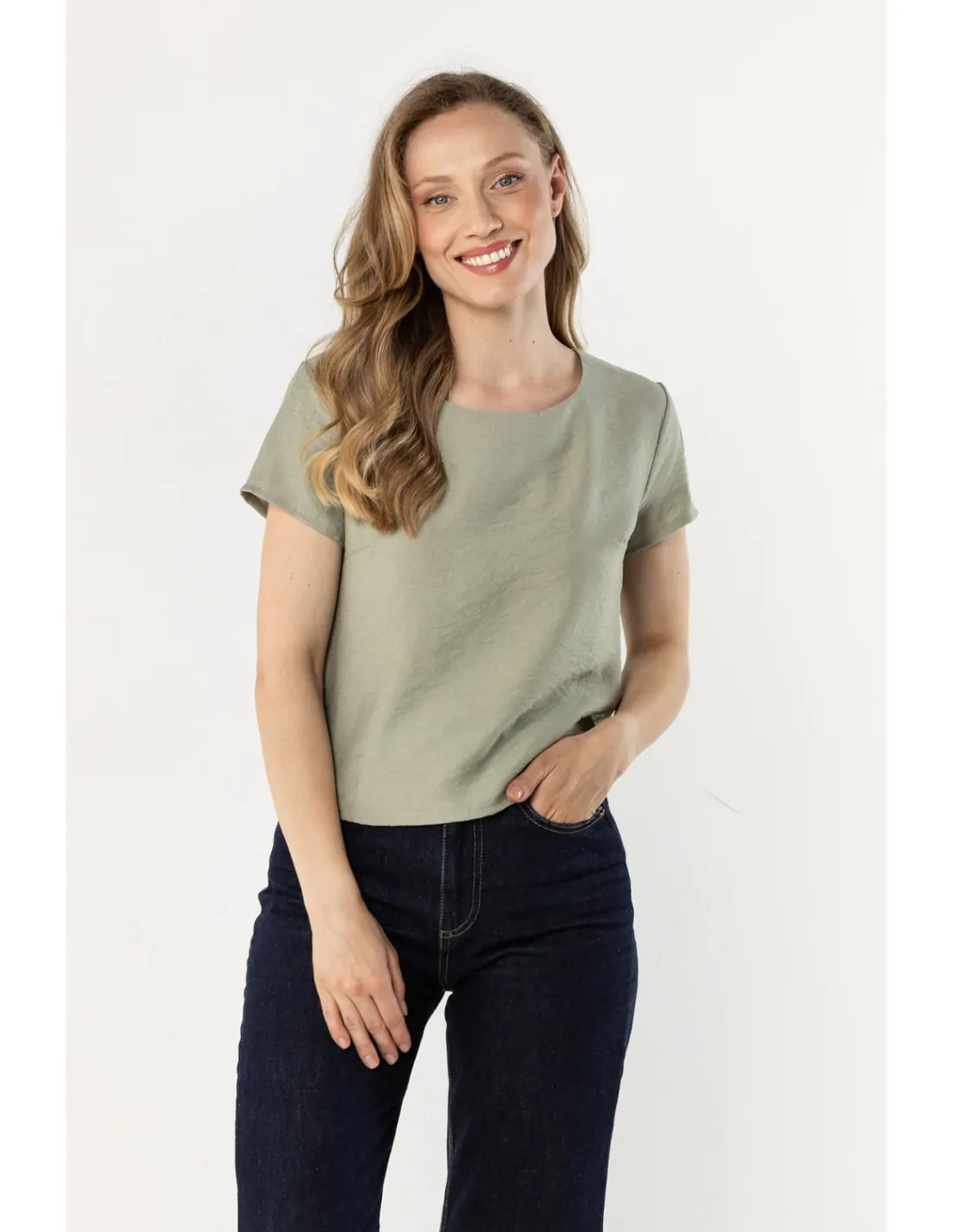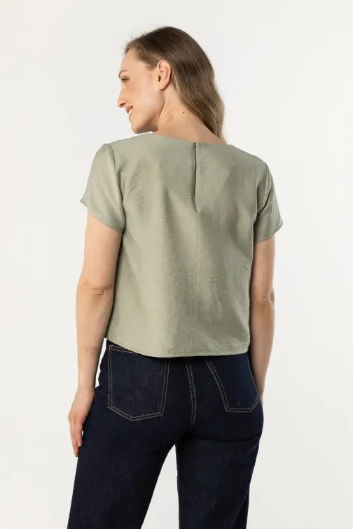 Bluzka o prostym kroju z krótkim rękawem - szałwiowa