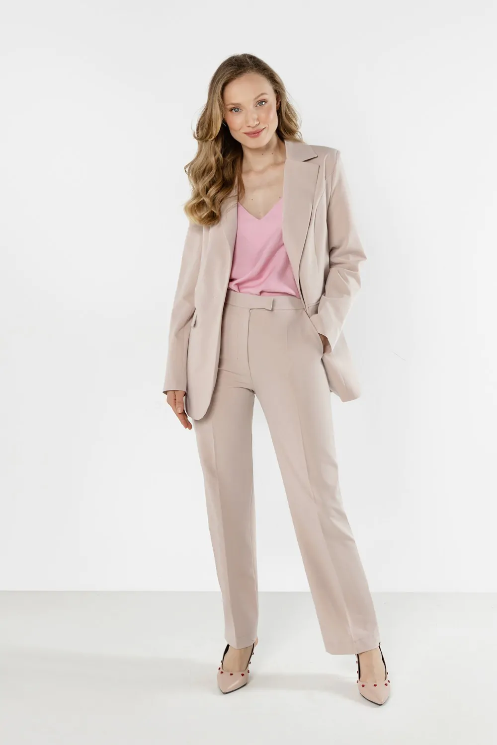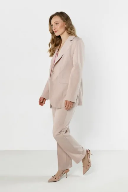 Elegancka marynarka damska zapinana na guzik - beżowa