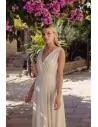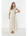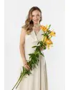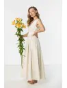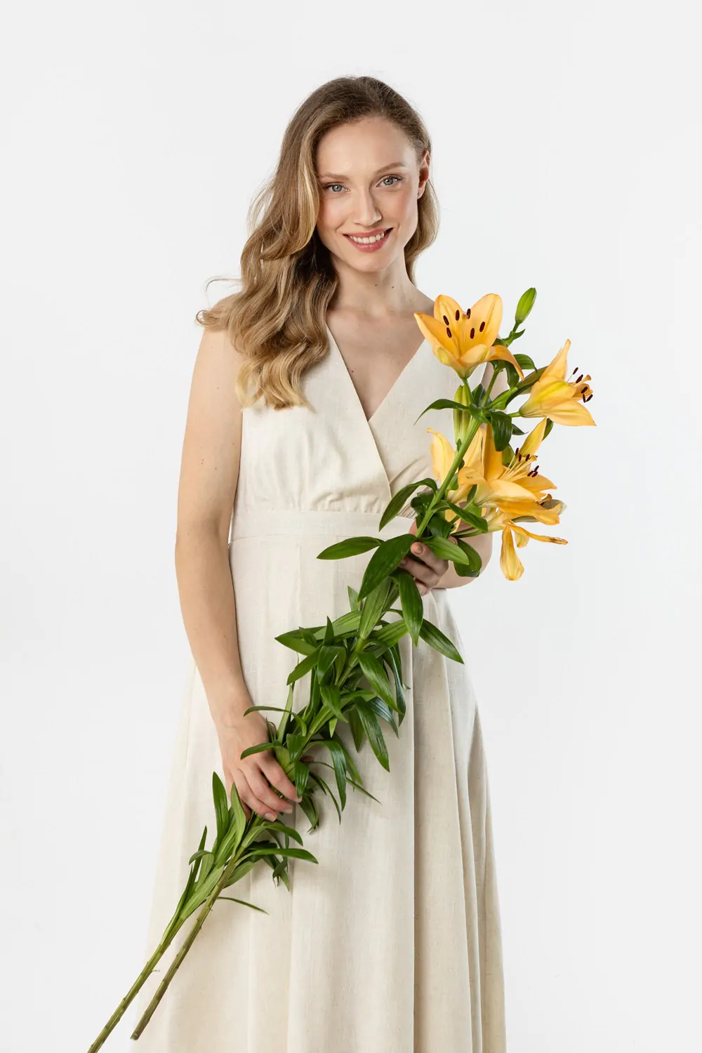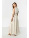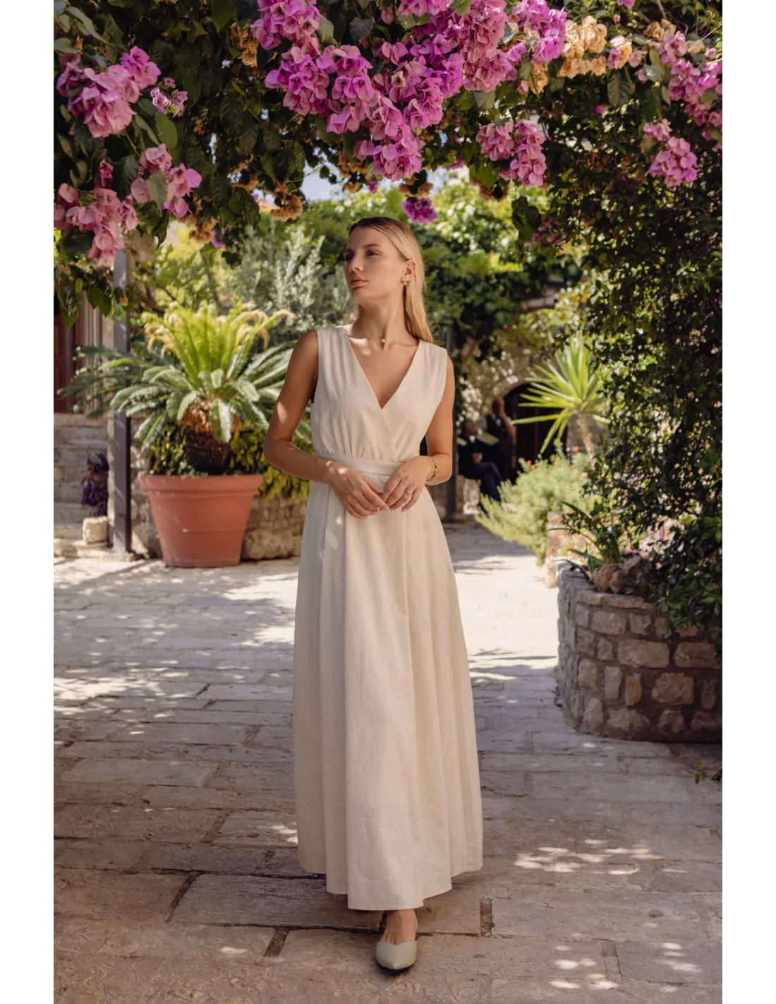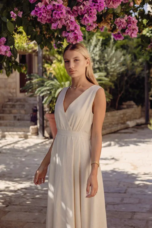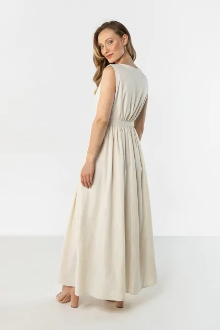 DM1580 Lniana sukienka maxi z kopertowym dekoltem - jasnobeżowa