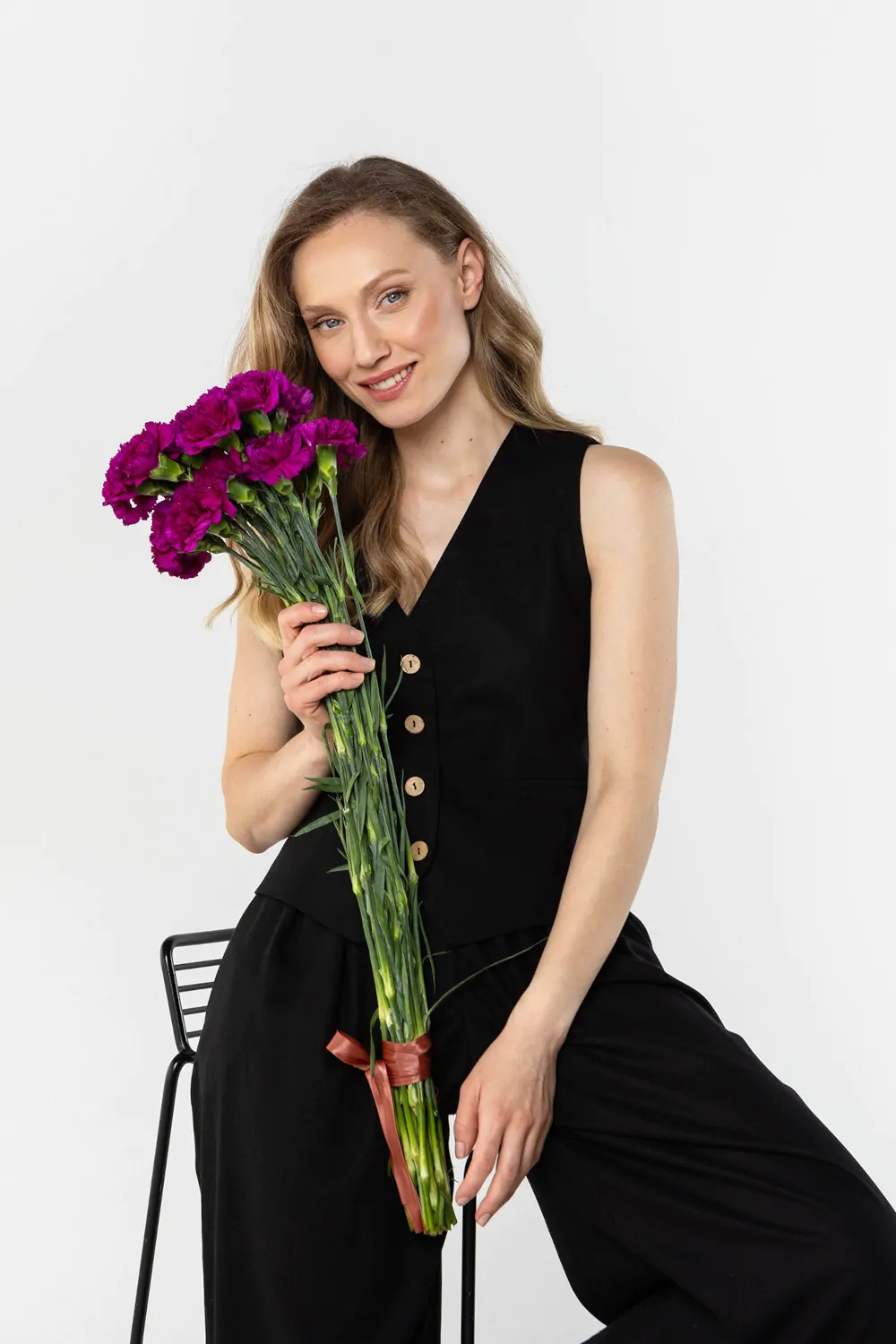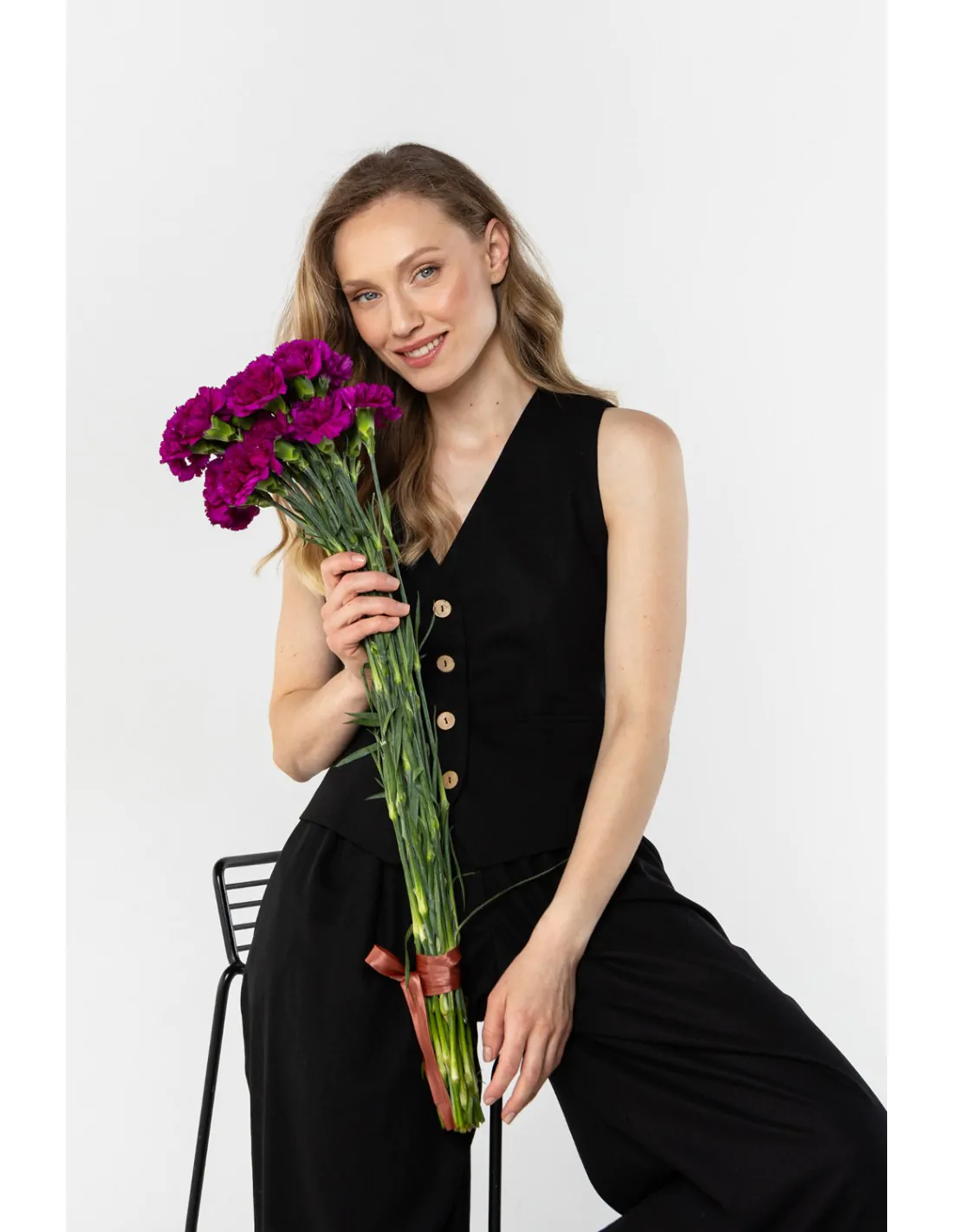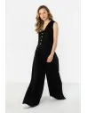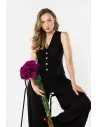 DM1584 Lniana kamizelka damska zapinana na guziki - czarna