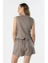 DM1584 Lniana kamizelka damska zapinana na guziki - latte