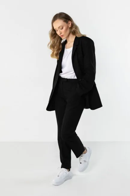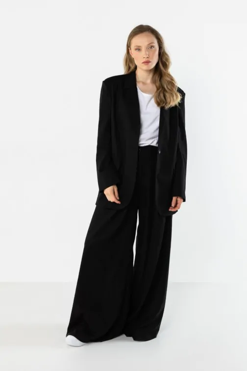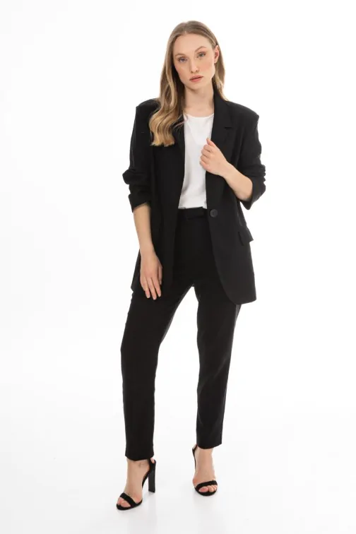 Lniana marynarka damska zapinana na guzik - czarna