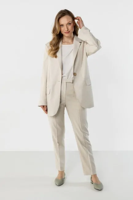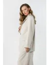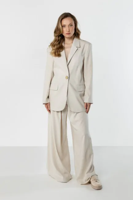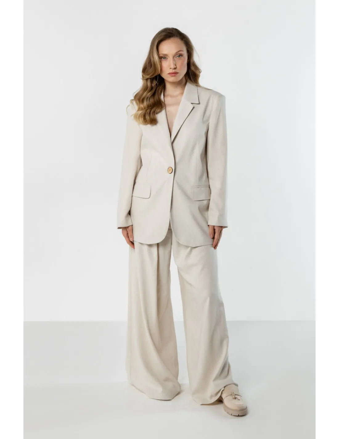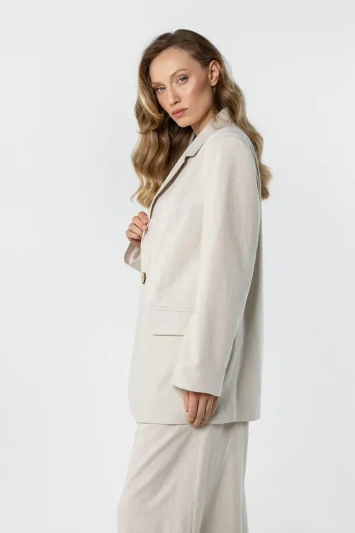 Lniana marynarka damska zapinana na guzik - jasnobeżowa