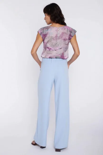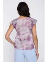 Bluzka z rękawem kimono to stylowy i lekki model, który doskonale wpisuje się w letnie, kobiece stylizacje. Swobodny fason z szerokim rękawem typu kimono zapewnia komfort noszenia i pięknie układa się na sylwetce, nadając całości lekkości. Wzór w liście dodaje bluzce świeżości i modnego charakteru, dzięki czemu świetnie sprawdzi się zarówno na co dzień, jak i w bardziej wyrazistych zestawach. Delikatna, przewiewna tkanina sprawia, że model jest wygodny nawet w cieplejsze dni. Bluzka doskonale komponuje się zarówno ze spodniami, jak i spódnicą, tworząc stylowy i uniwersalny look.