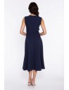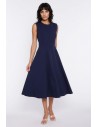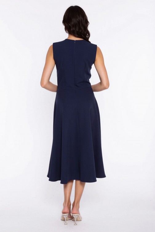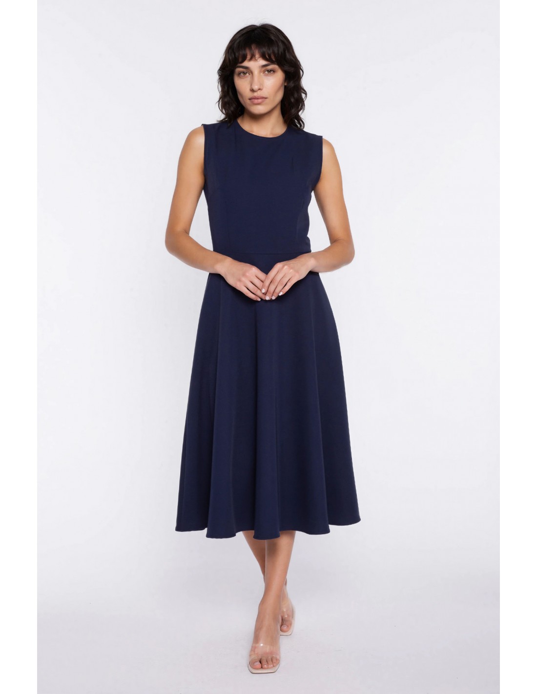 DM1592 Trapezowa sukienka midi z okrągłym dekoltem - granatowa