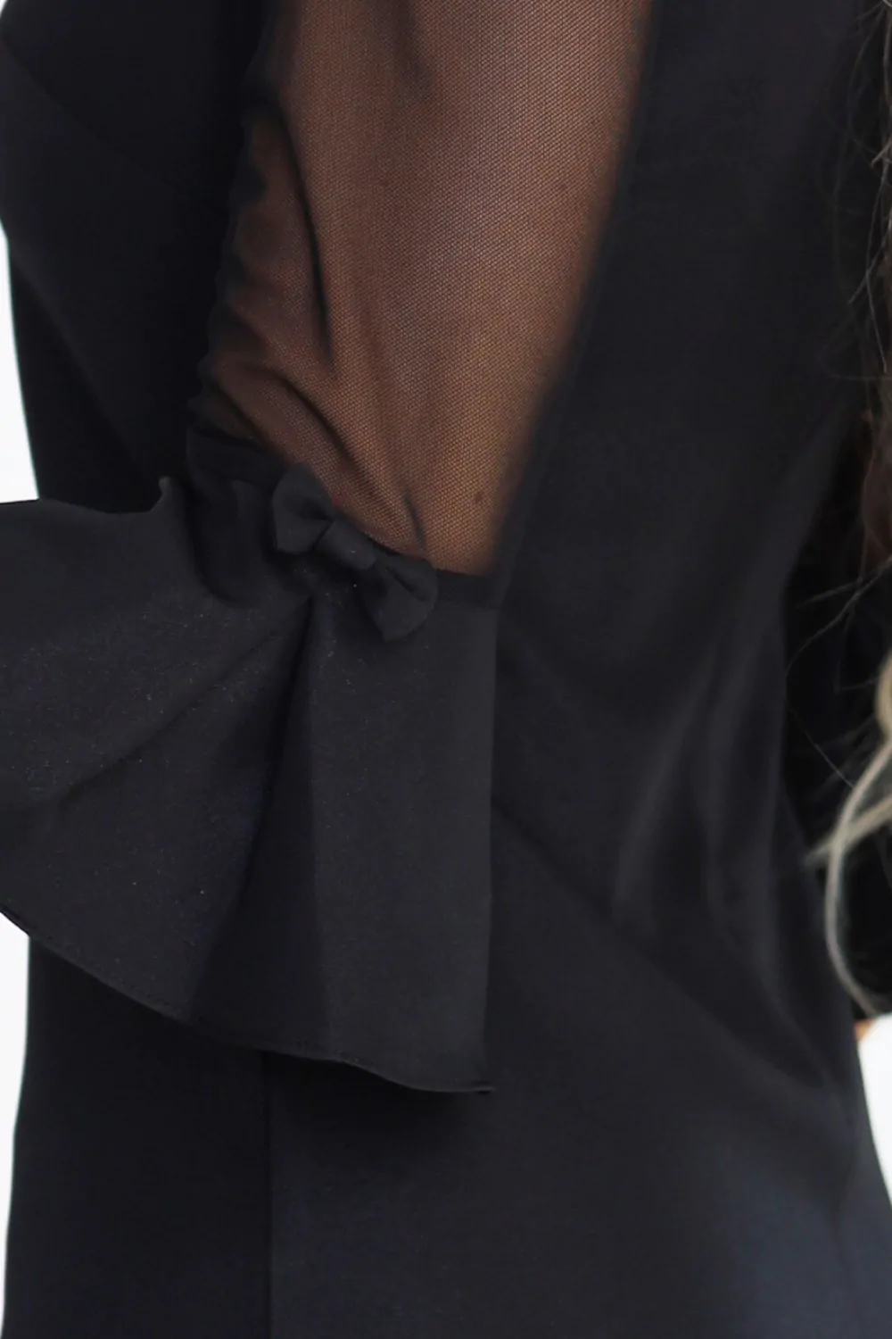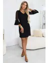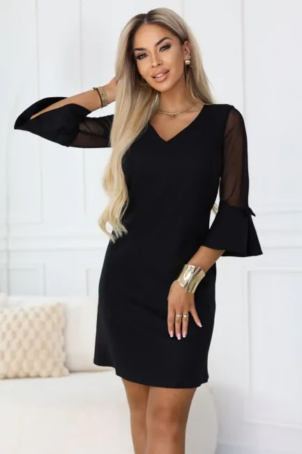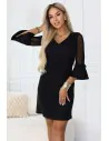 DM1597 Sukienka trapezowa z tiulowymi rękawami - czarna