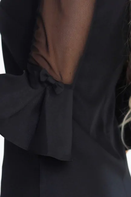 Sukienka trapezowa z tiulowymi rękawami - czarna