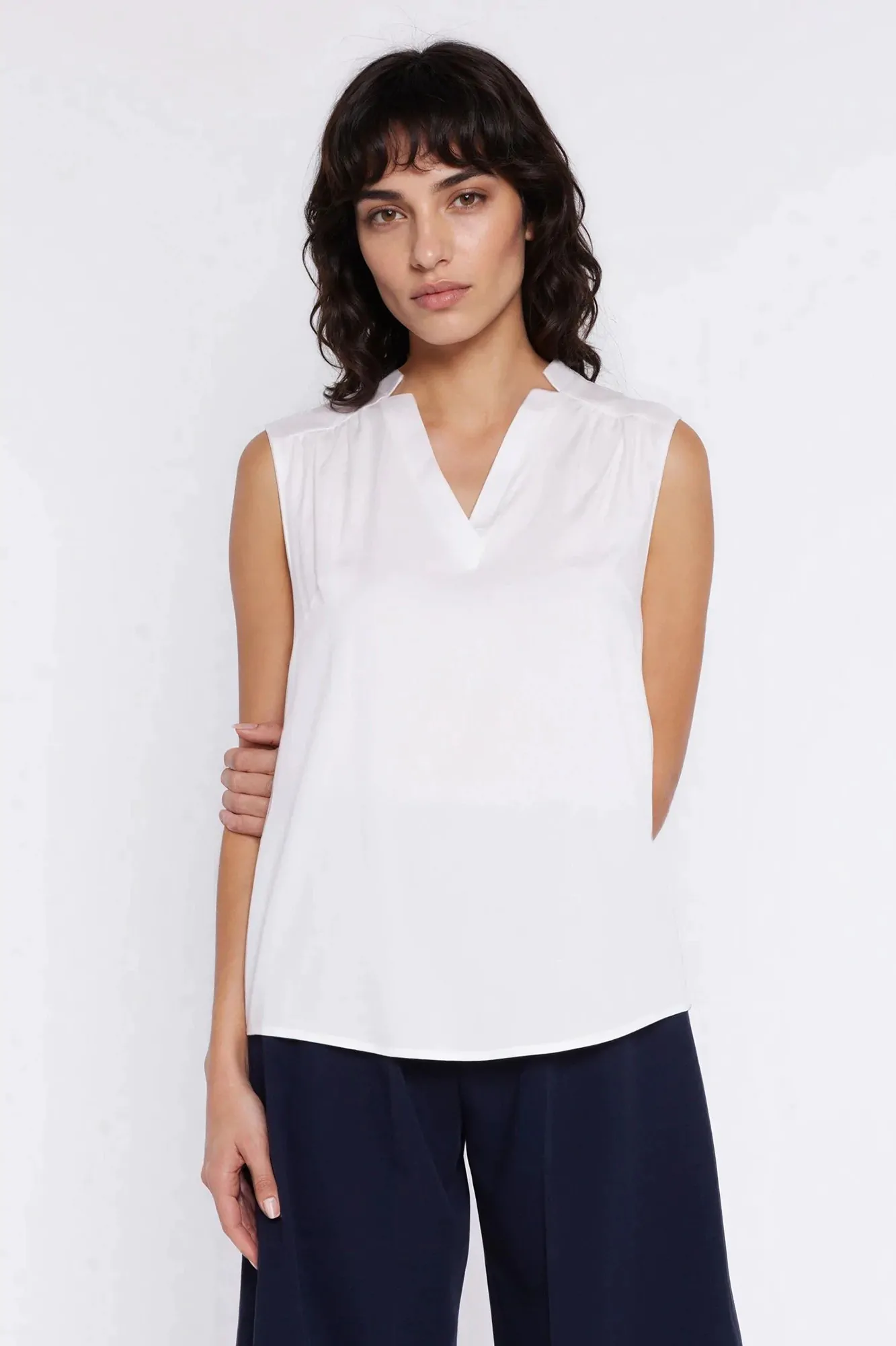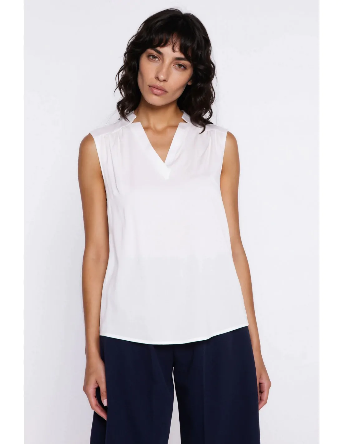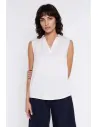 Bluzka bez rękawów z dekoltem V - ecru