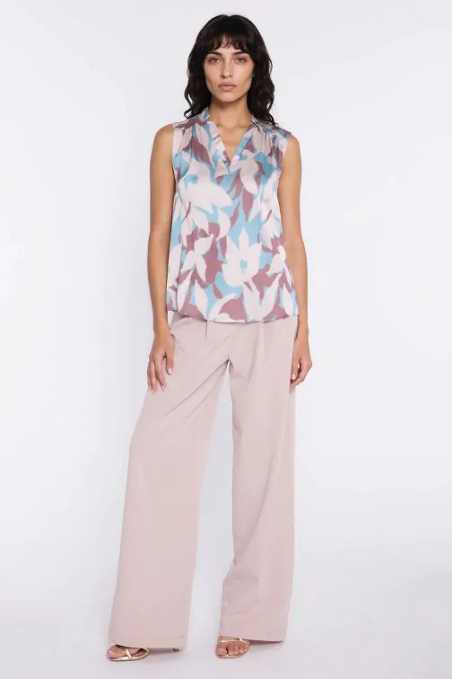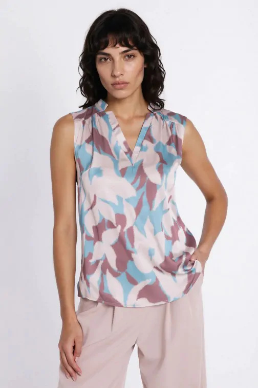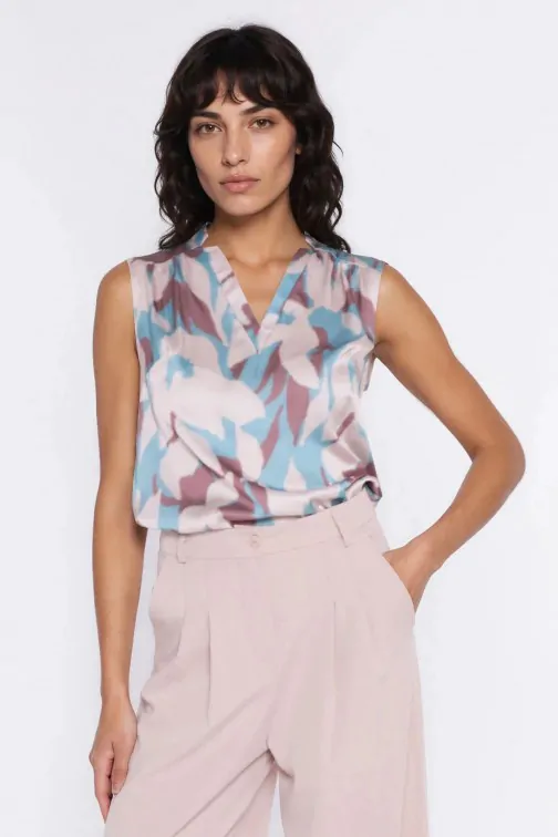 Bluzka bez rękawów z dekoltem V - kwiaty