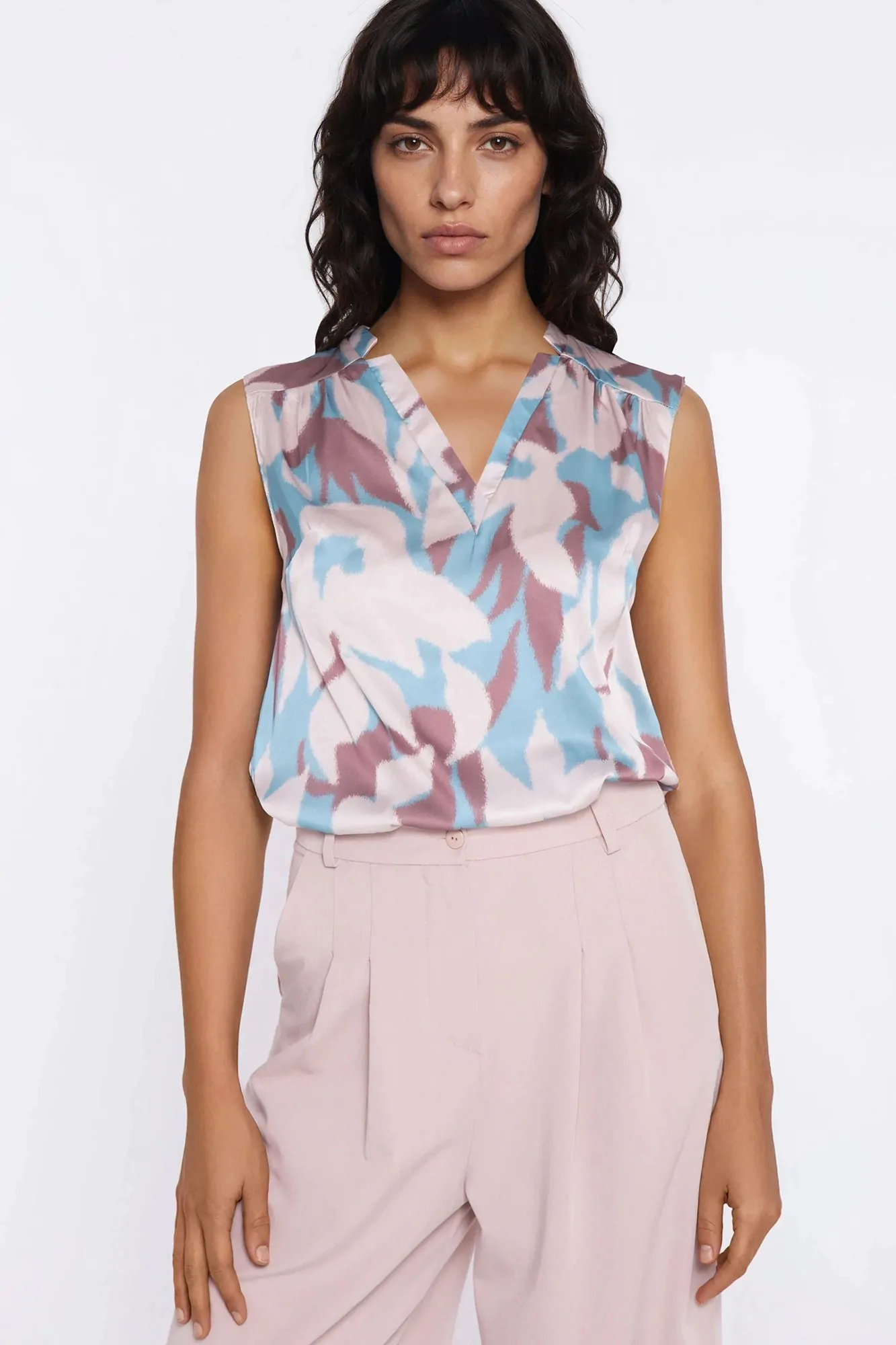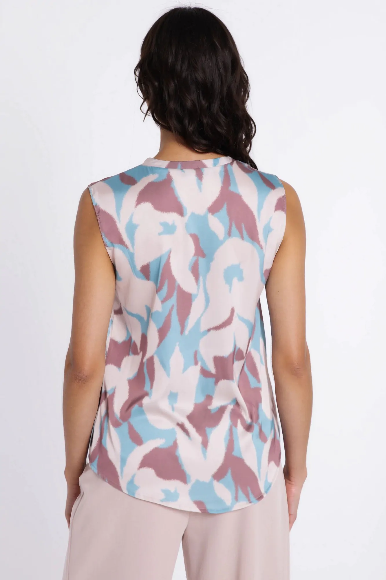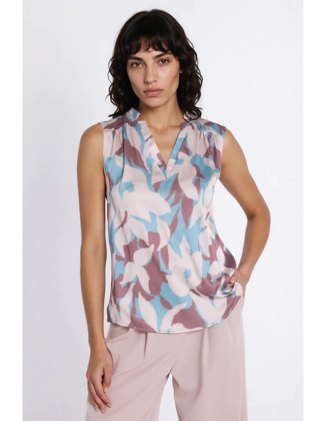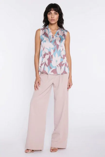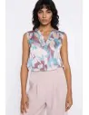 DM1598 Bluzka bez rękawów z dekoltem V - kwiaty