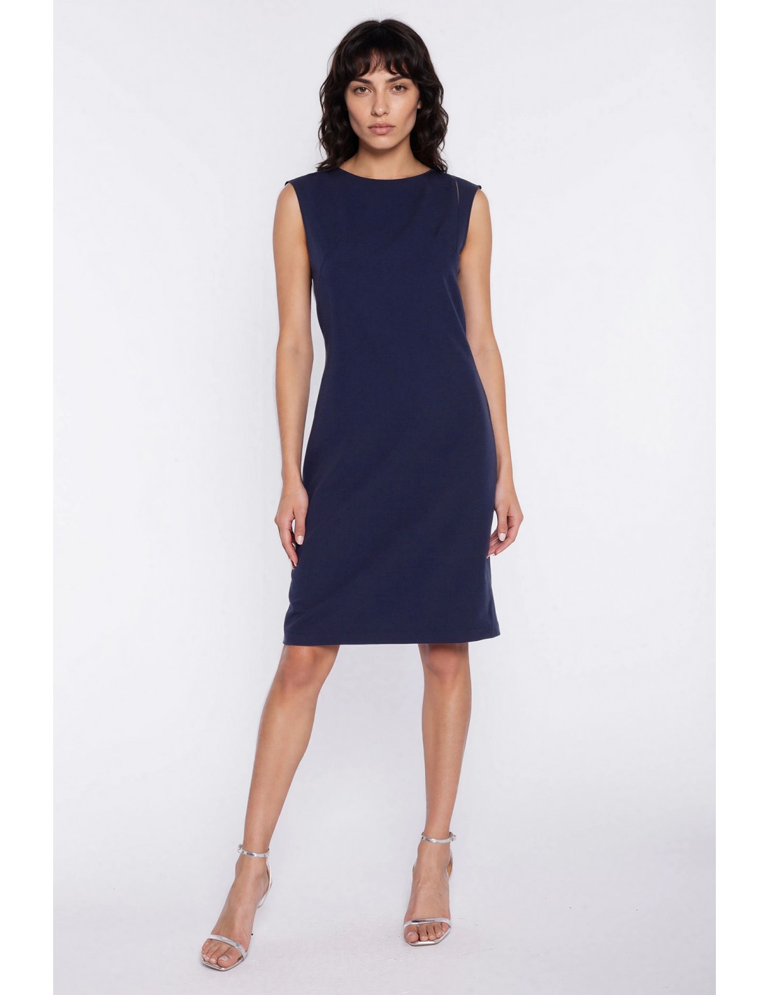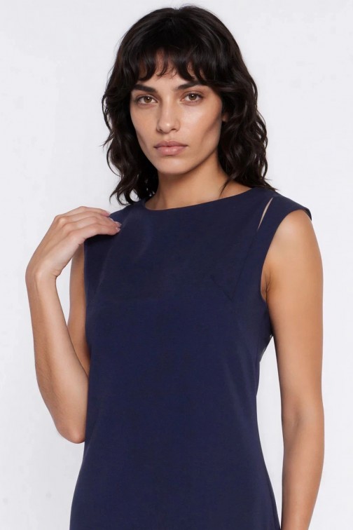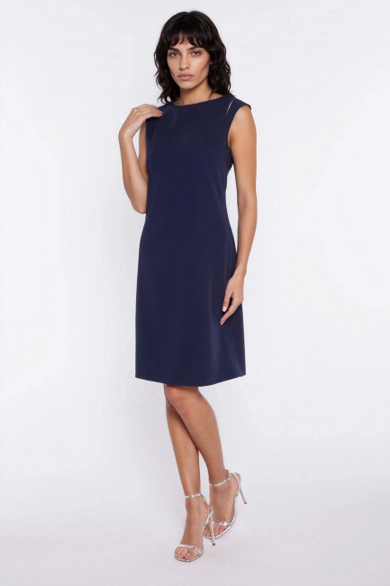 DM1601 Sukienka midi z dekoltem typu łódka - granatowa