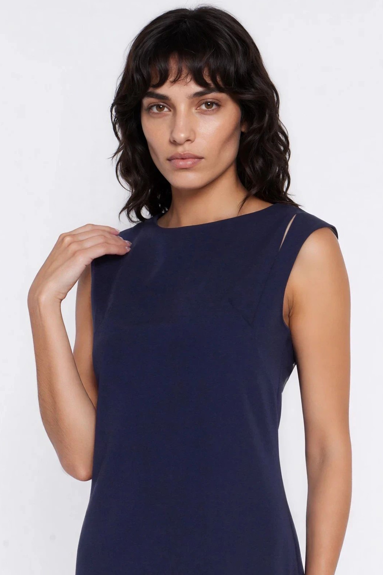 Sukienka z efektownym pęknięciem na ramieniu to nowoczesna propozycja dla kobiet, które cenią minimalistyczną elegancję z nutą oryginalności. Swobodny fason typu relaxed fit zapewnia wygodę noszenia i subtelnie układa się na sylwetce, podkreślając jej naturalne proporcje bez nadmiernego dopasowania. Model bez rękawów z dekoltem w łódkę pięknie eksponuje linię szyi i ramion, dodając stylizacji lekkości i kobiecego charakteru. Charakterystyczne pęknięcie na ramieniu stanowi nowoczesny detal, który przyciąga uwagę i nadaje całości unikalnego wyrazu. Długość przed kolano sprawia, że sukienka doskonale sprawdzi się zarówno w stylizacjach codziennych, jak i bardziej eleganckich. Zapięcie na zamek z tyłu ułatwia zakładanie i zapewnia estetyczne wykończenie. Przyjemny w dotyku materiał z dodatkiem włókien elastycznych gwarantuje komfort noszenia przez cały dzień oraz swobodę ruchów.