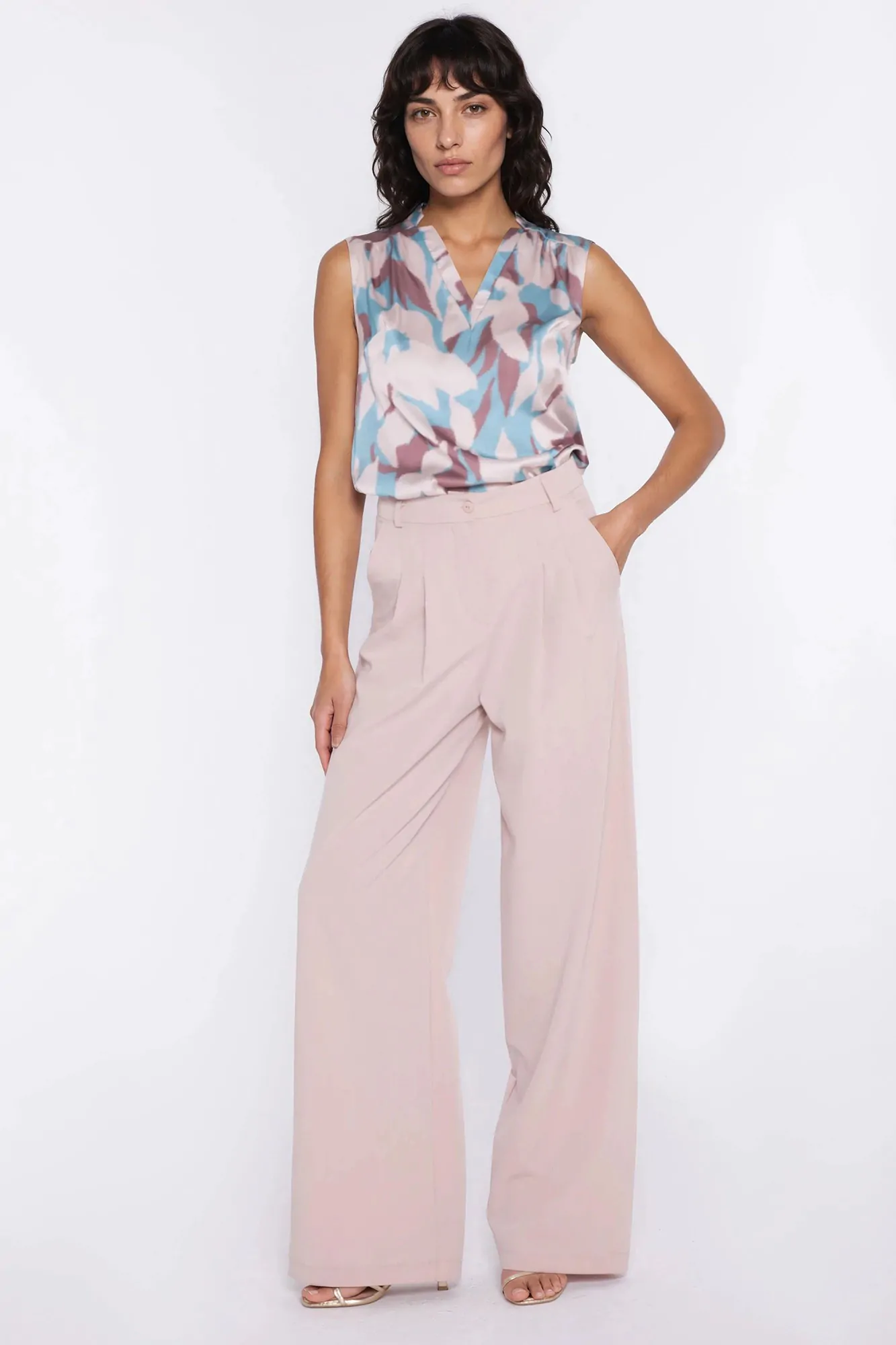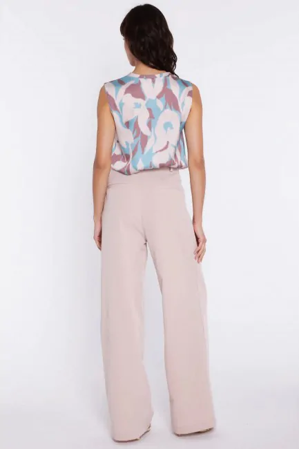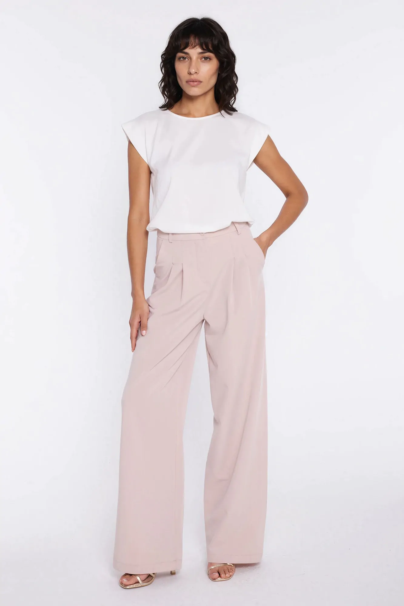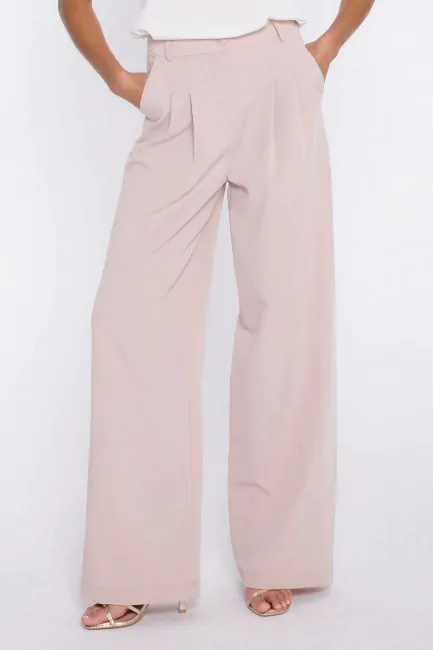 DM1603 Spodnie z szerokimi nogawkami i kieszeniami - beżowe