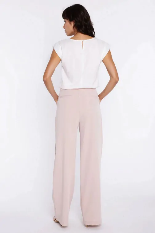 Spodnie z szerokimi nogawkami i kieszeniami - beżowe