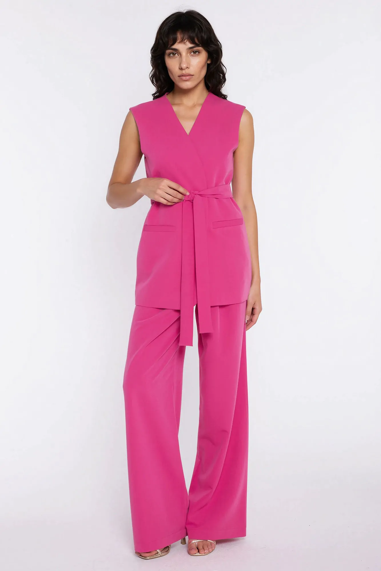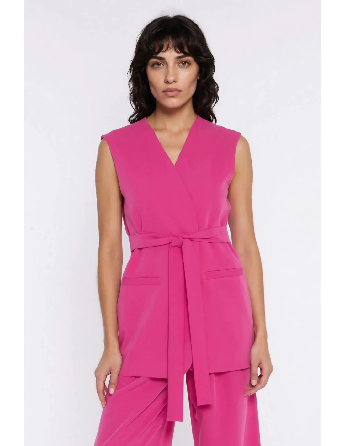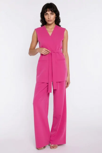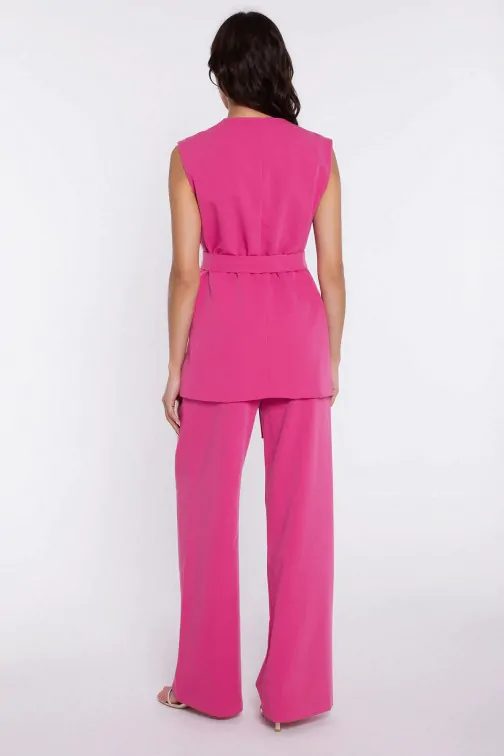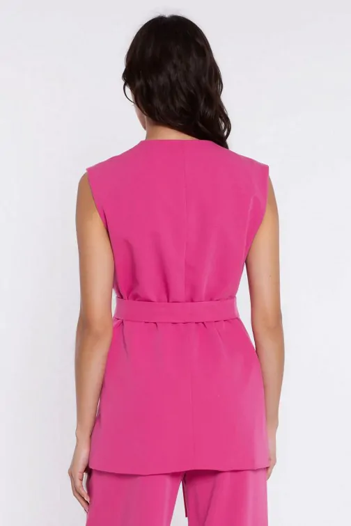 DM1605 Kamizelka damska z wiązaniem w pasie - różowa