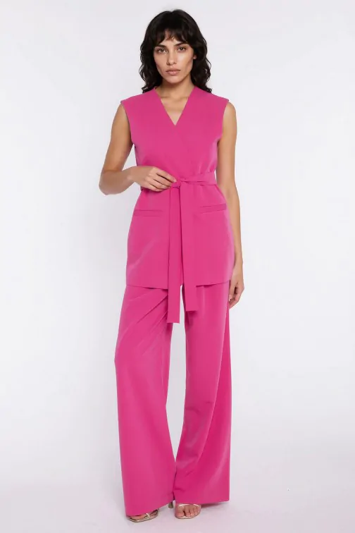 Kamizelka damska z wiązaniem w pasie - różowa