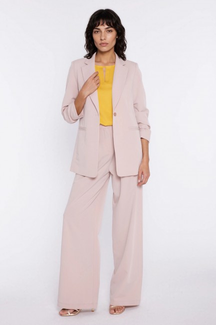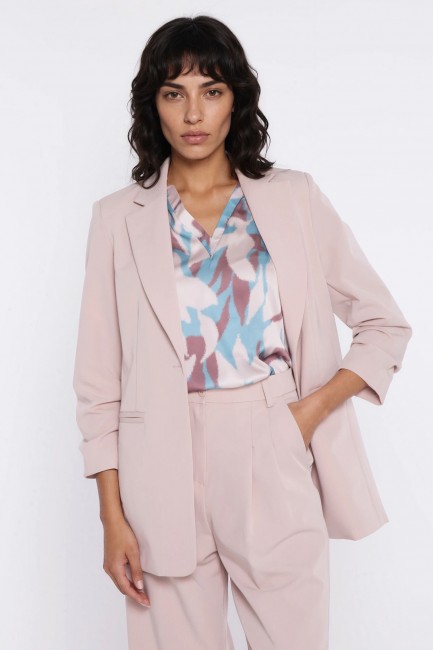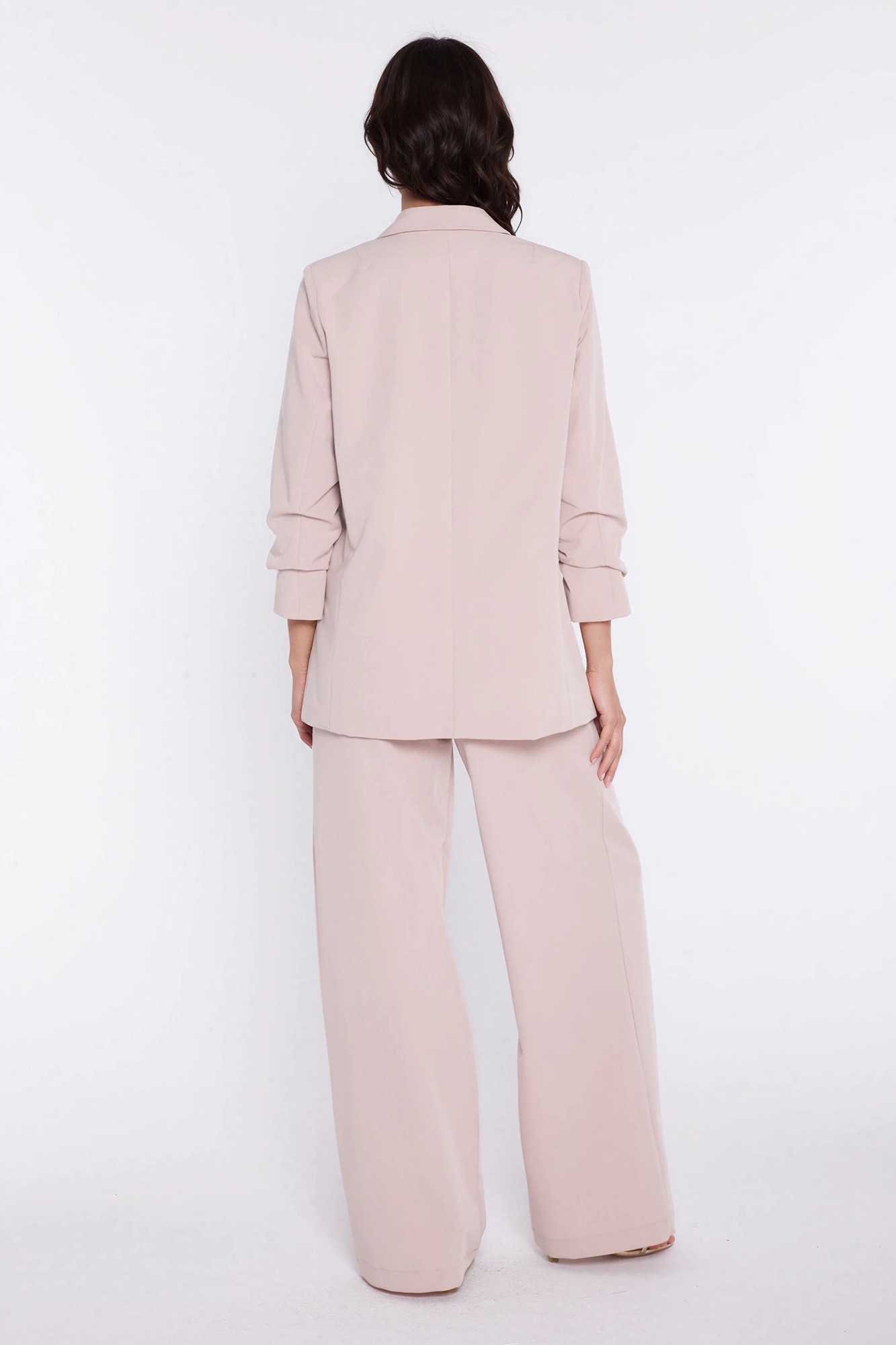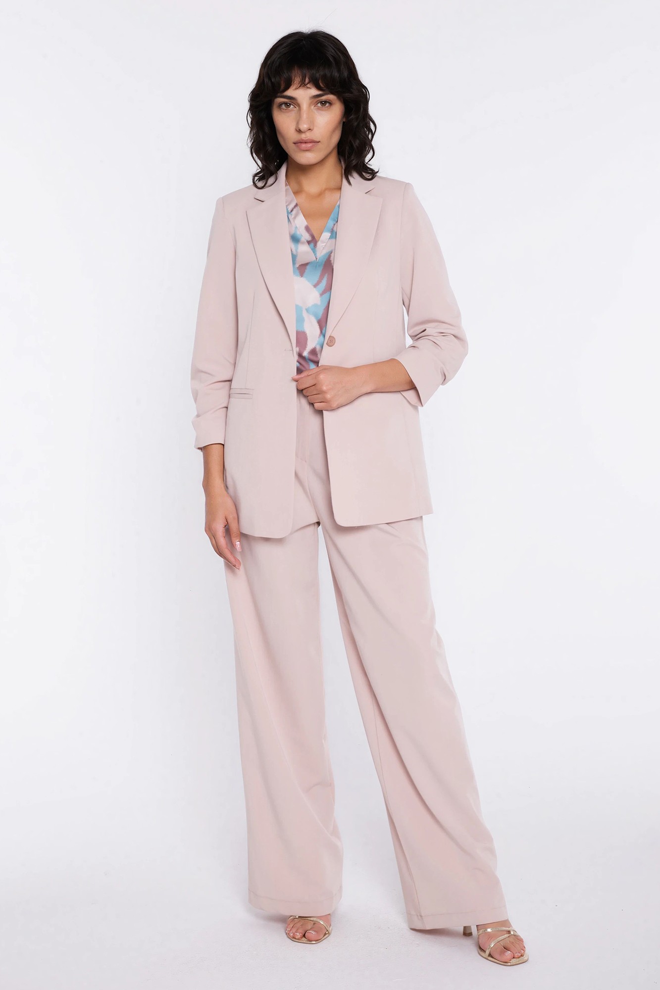DM1606 Marynarka o kroju regular z marszczonymi rękawami - beżowa