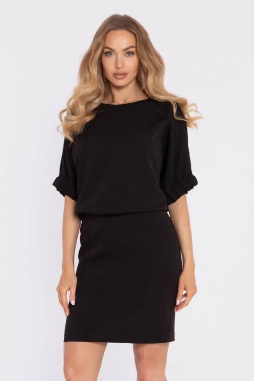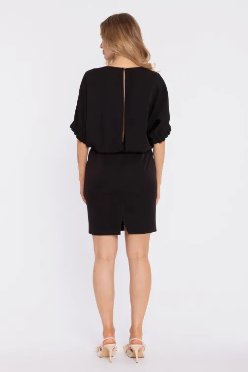 DM1666 Sukienka mini z luźną górą i rozcięciem na plecach - czarna