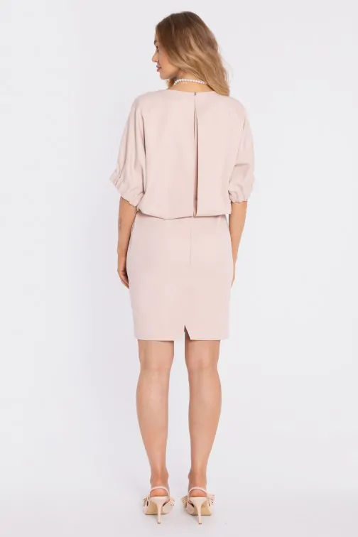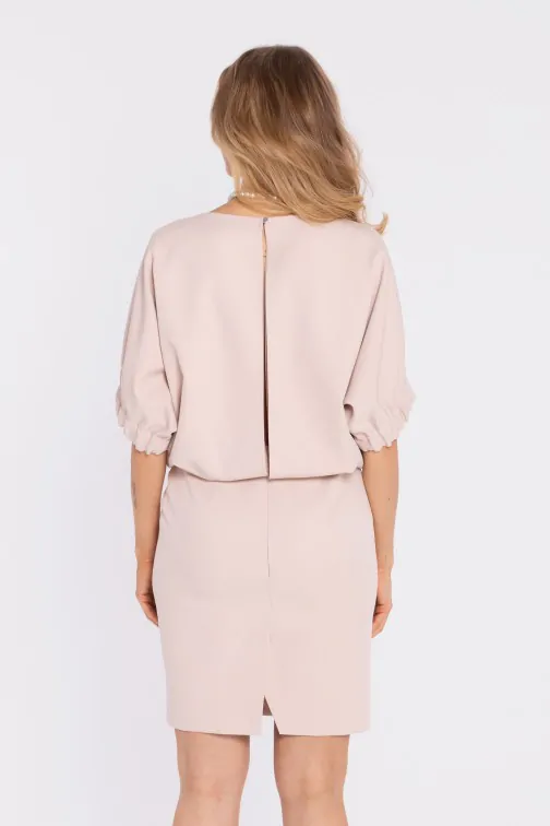Sukienka mini z luźną górą i rozcięciem na plecach - jasnobeżowa