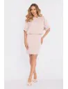 DM1666 Sukienka mini z luźną górą i rozcięciem na plecach - jasnobeżowa