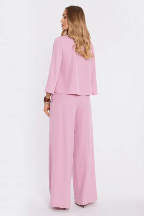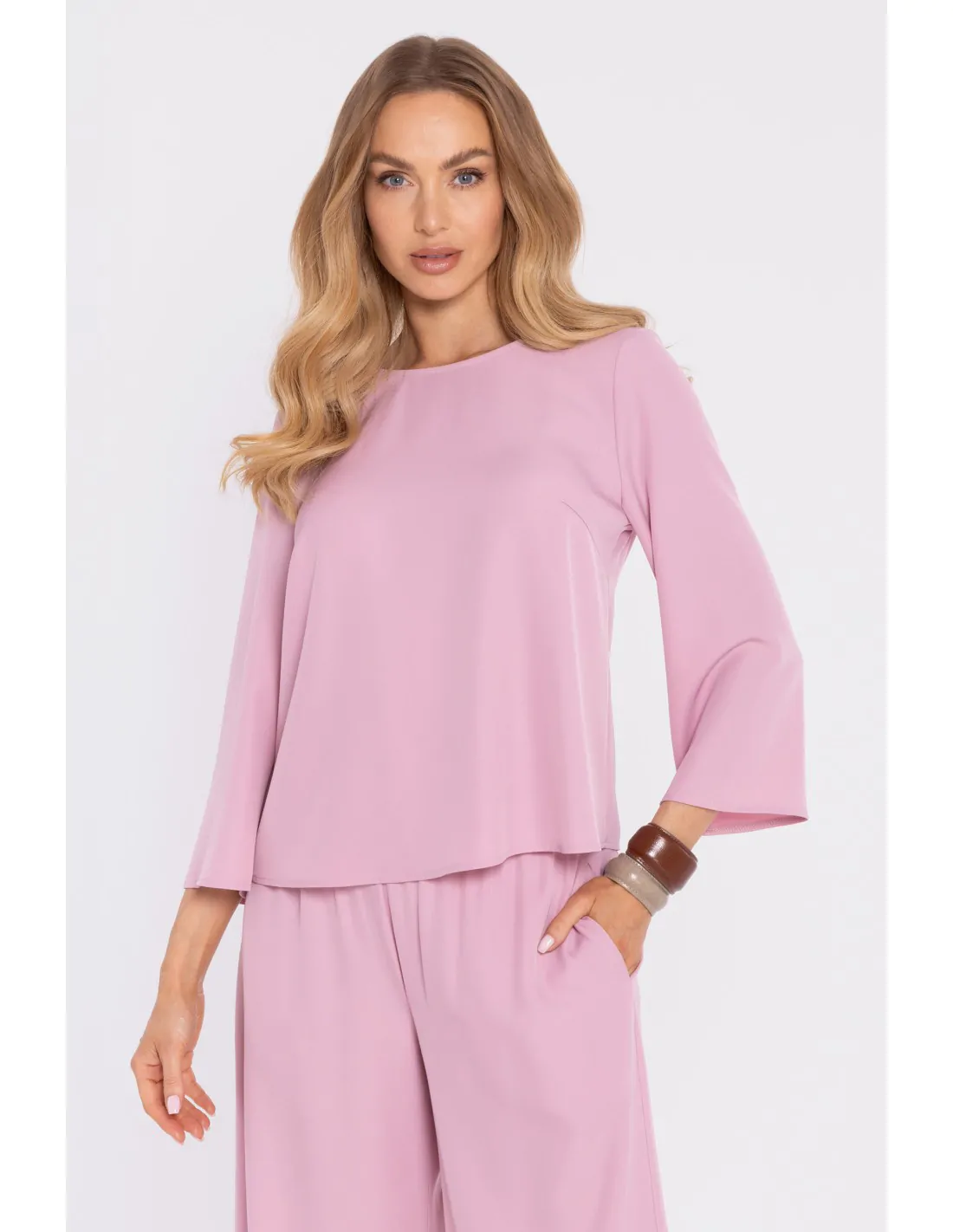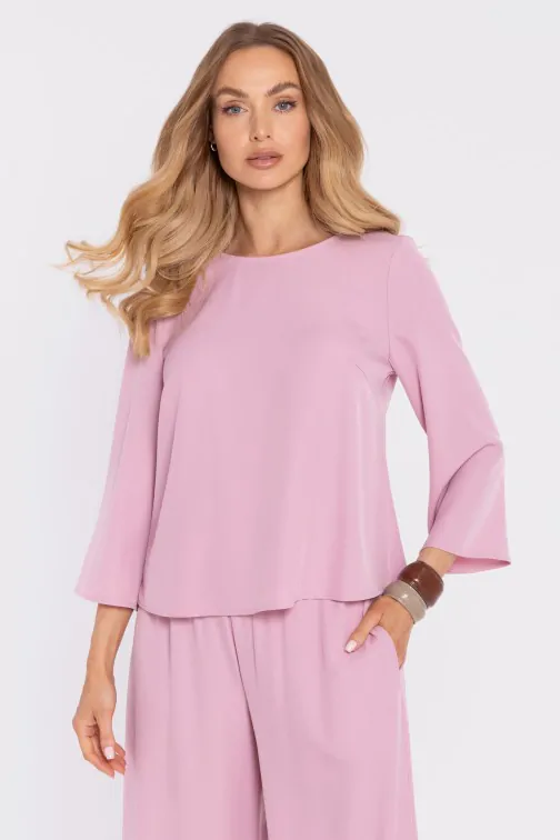 DM1667 Elegancka bluzka z luźnymi rękawami - pudrowa