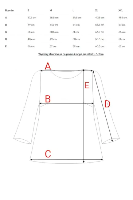 • Dół bluzki: prosty, swobodnie opadający (idealny do noszenia na wierzchu)