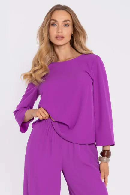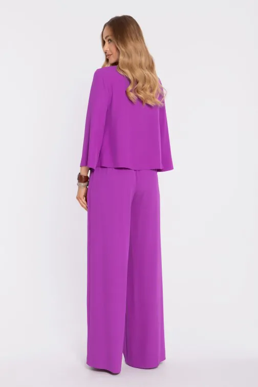 DM1668 Spodnie typu palazzo z wysokim stanem i gumką w pasie - lawendowe