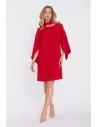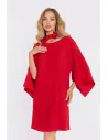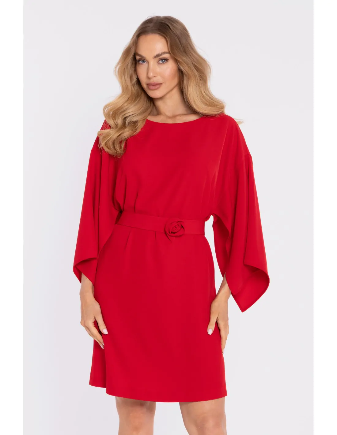 DM1670 Sukienka z luźnymi rękawami i ozdobnym paskiem - czerwona
