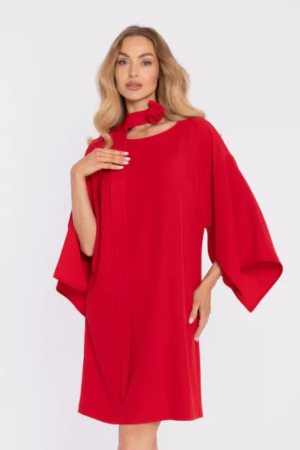Sukienka z luźnymi rękawami i ozdobnym paskiem - czerwona
