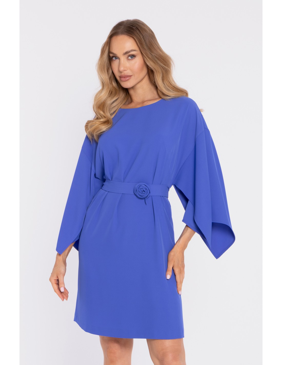 Fason: minimalistyczna sukienka z szerokim rękawem i paskiem do wiązania