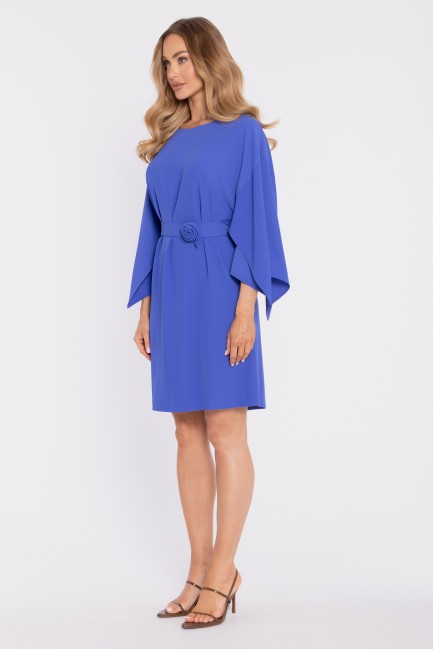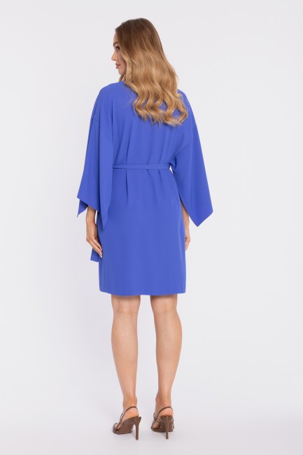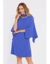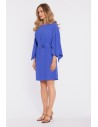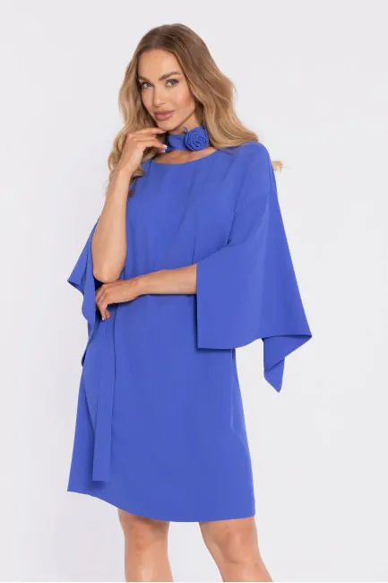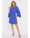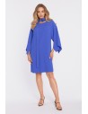 Trapezowa sukienka mini z długimi rękawami - chabrowa