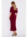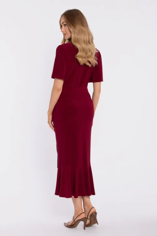 DM1674 Kopertowa sukienka midi z falbaną i marszczeniem - bordowa