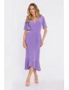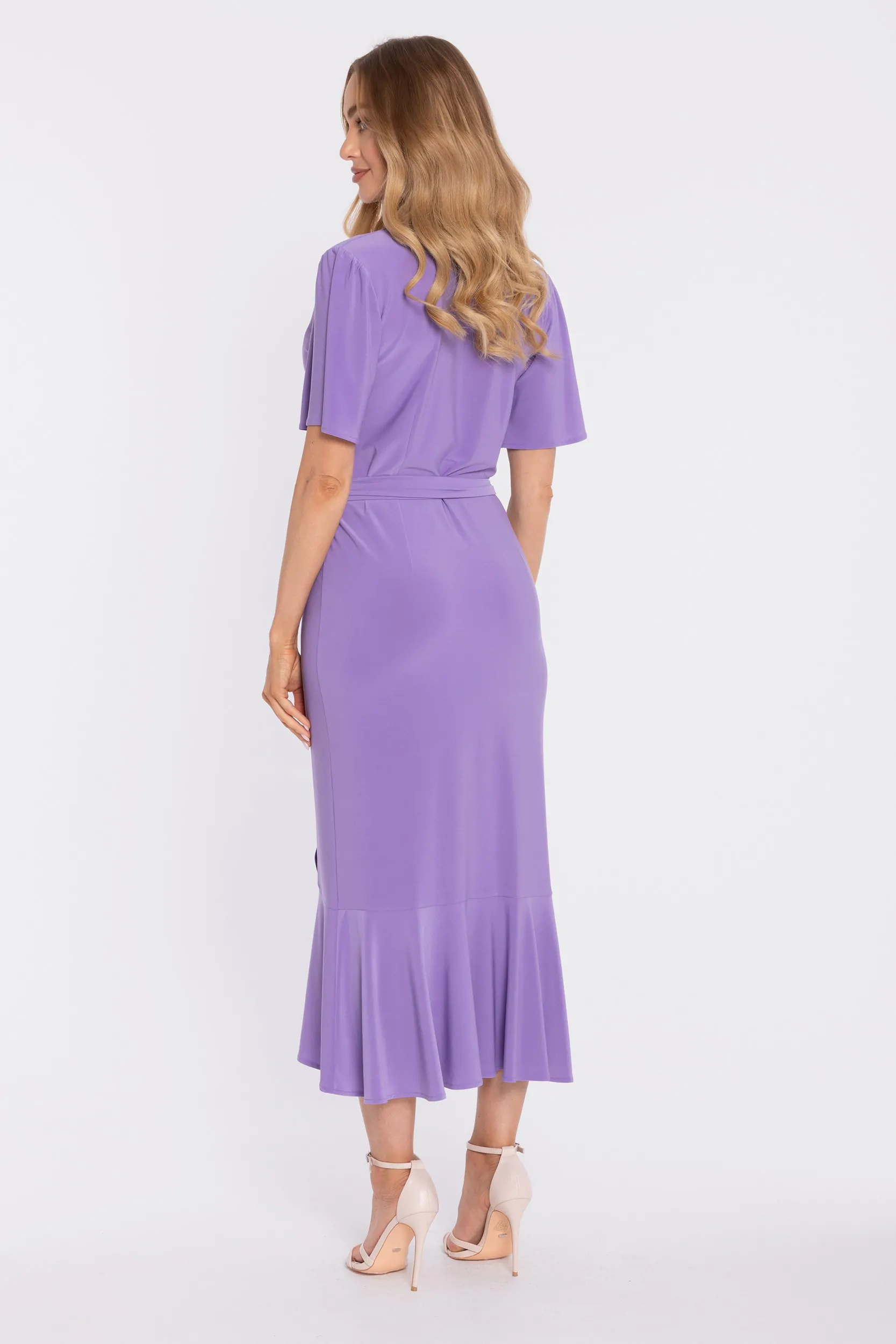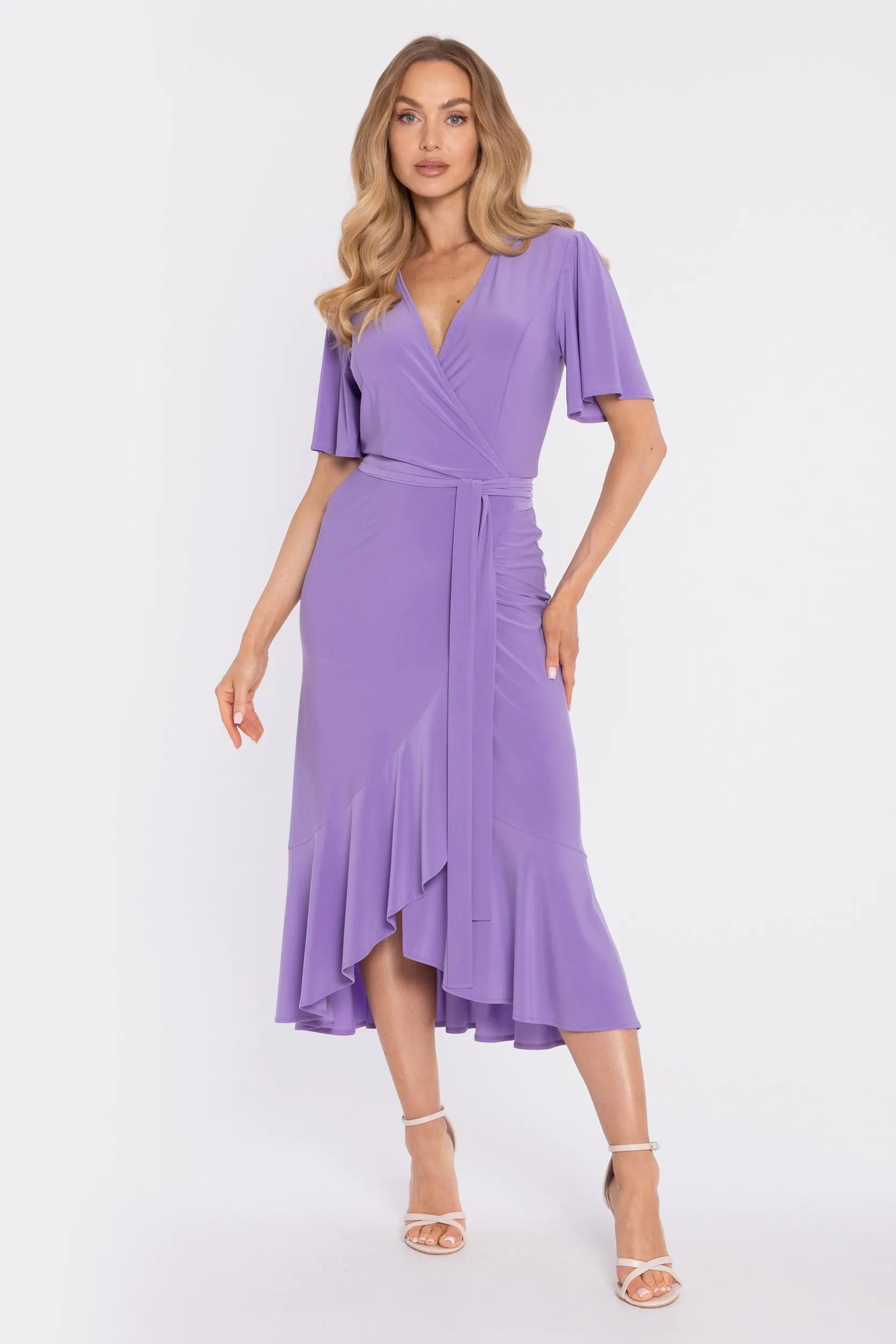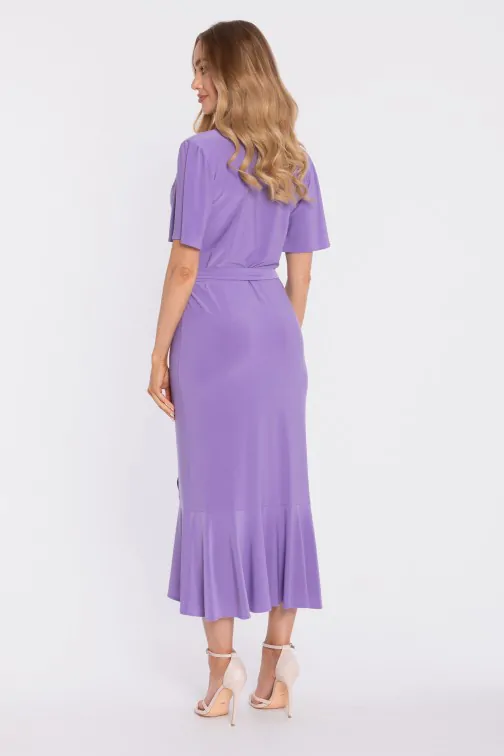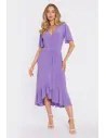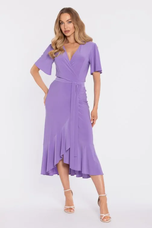 DM1674 Kopertowa sukienka midi z falbaną i marszczeniem - jasnofioletowa